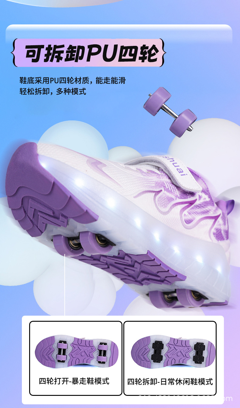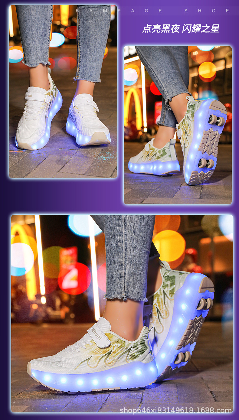 Трансформирующиеся обуви для детей, четырехколесные Heelys, светящиеся роликовые коньки для мальчиков и девочек, оптовая продажа двойных роликов