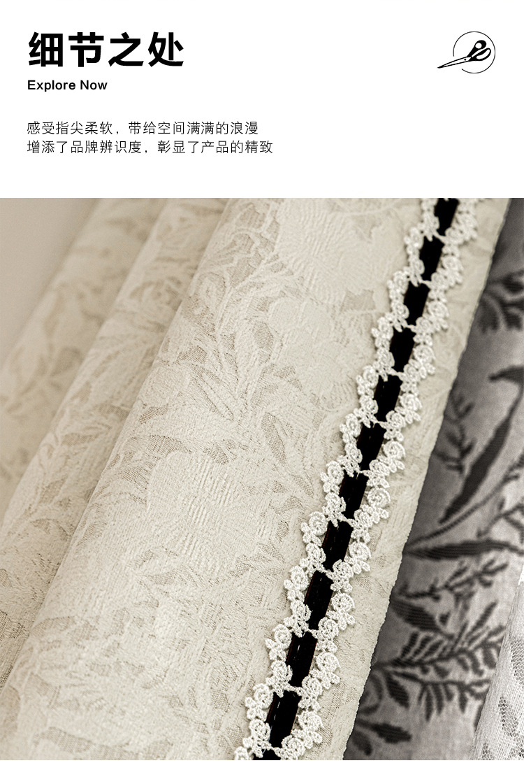 Французские черные затемняющие шторы для спальни, высококачественные, новые шторы для гостиной с рельефным жаккардом из шенилла, Кецяо 2025