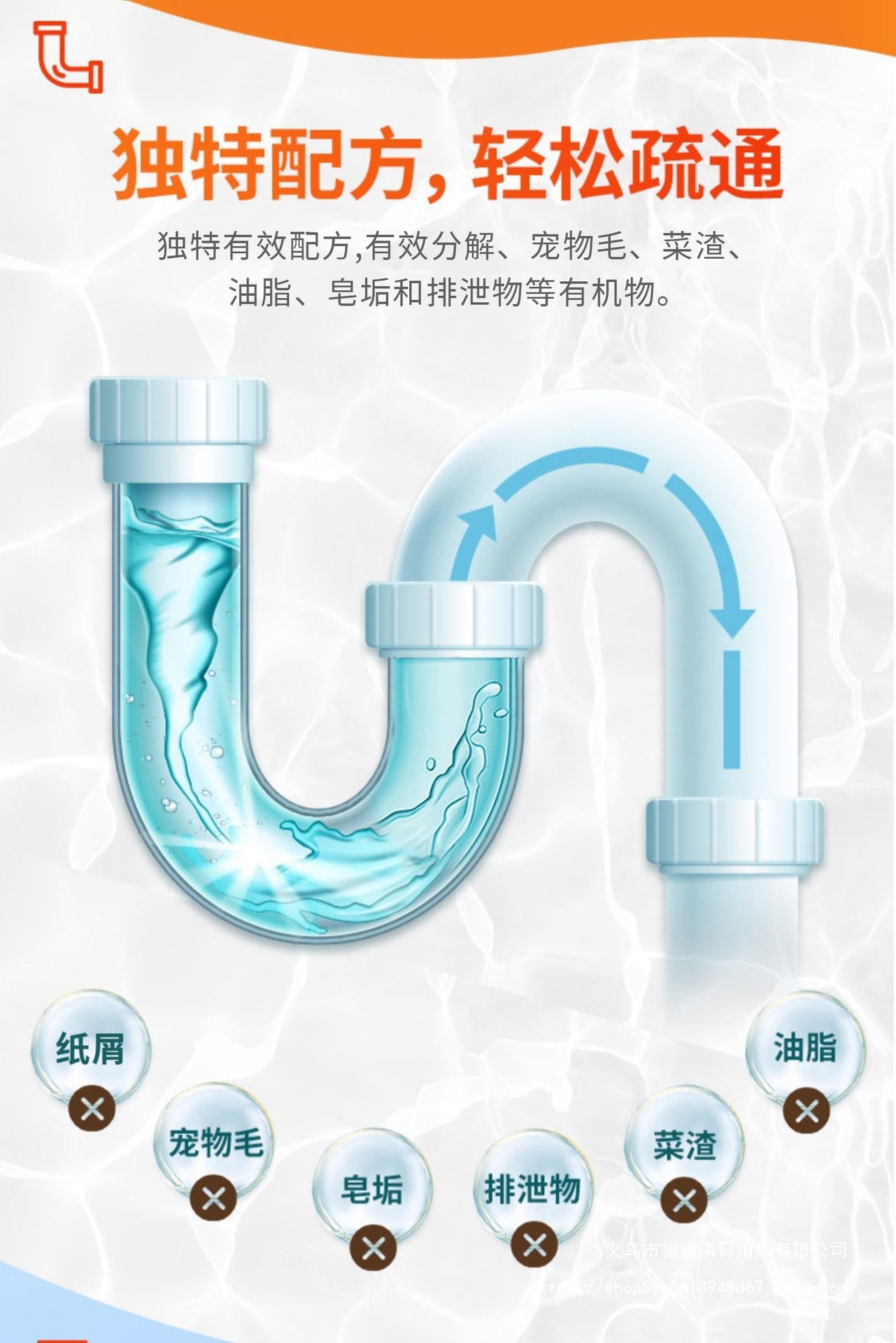 Агент для прочистки труб, устраняющий запахи и загрязнения в канализации