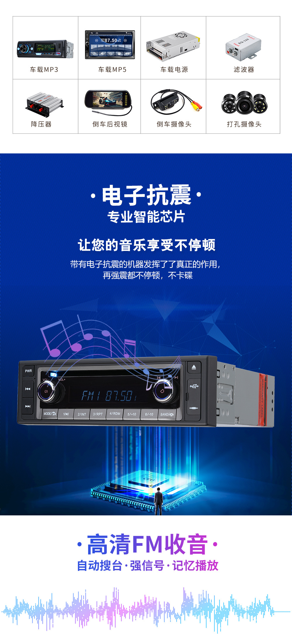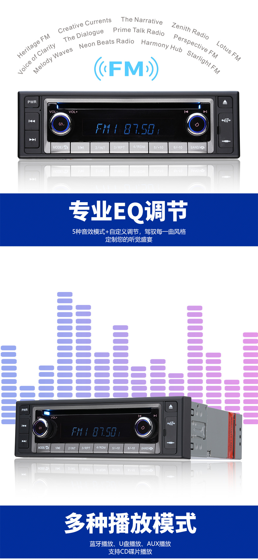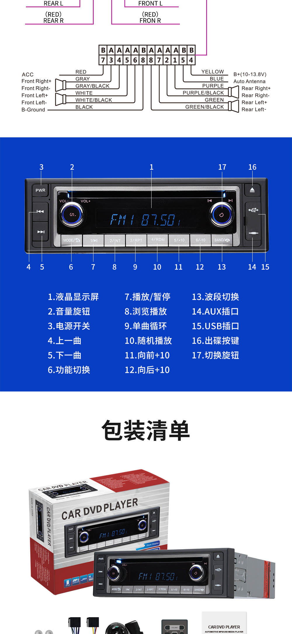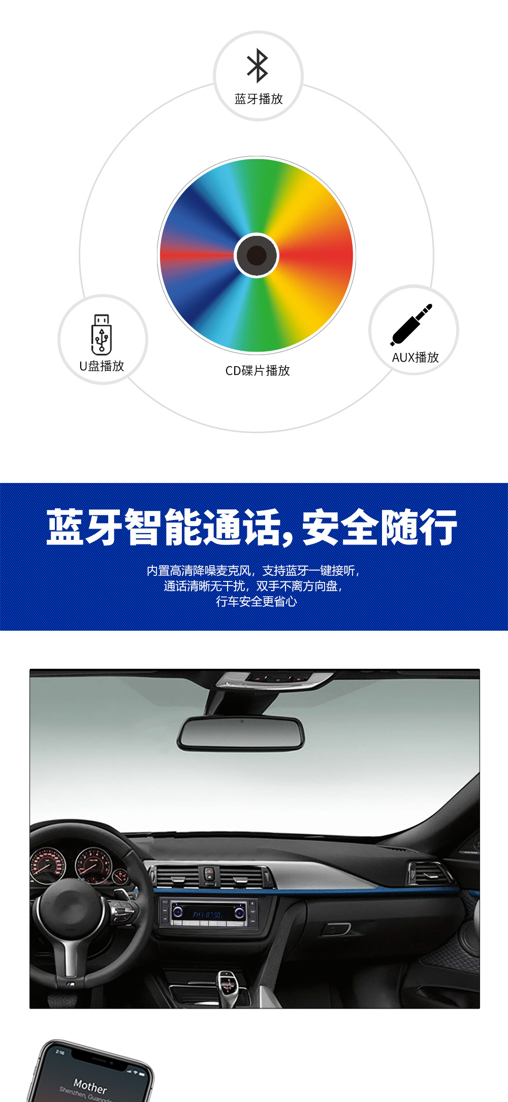 Basic functions: ① Bluetooth function; ② Radio; ③ Read USB flash drive (audio)