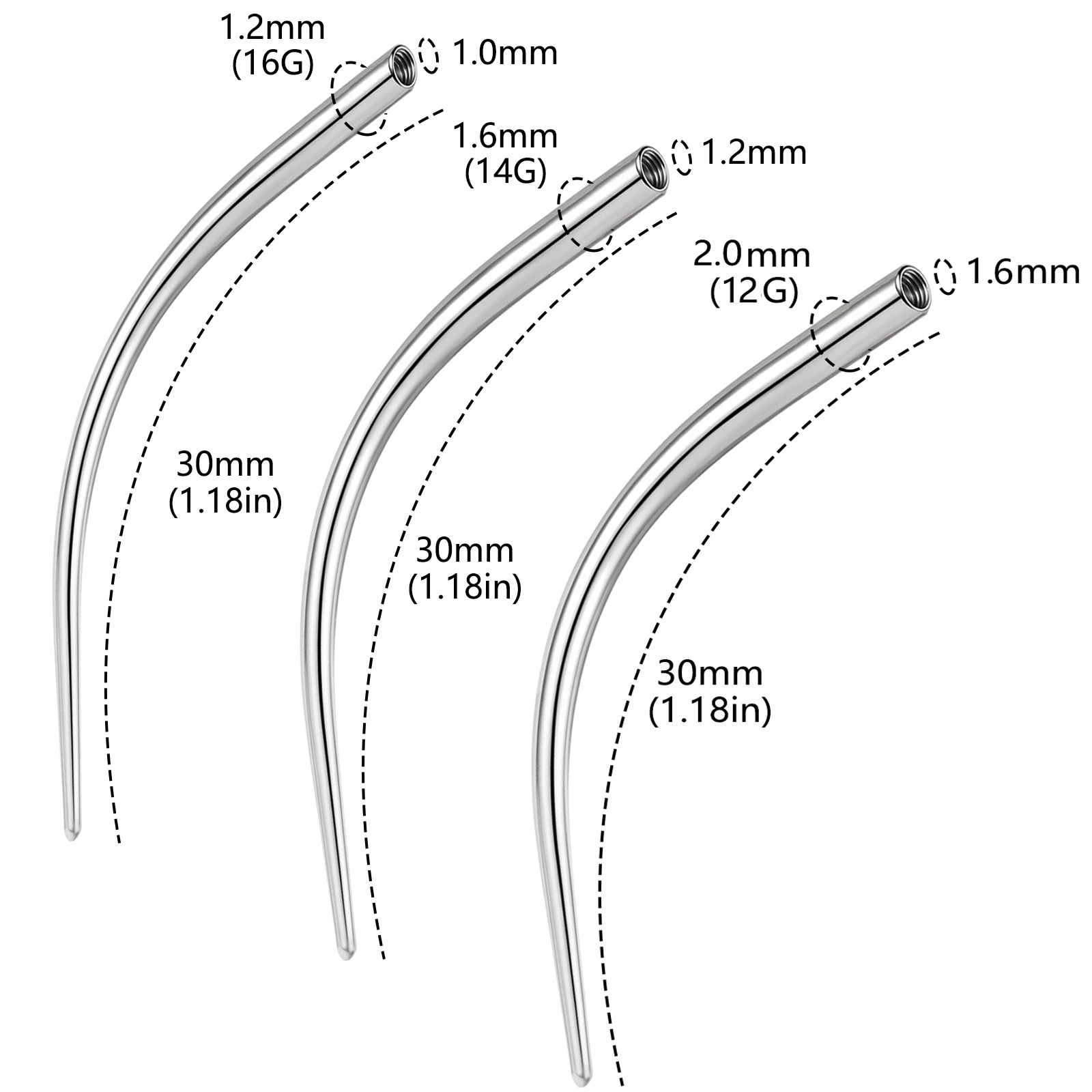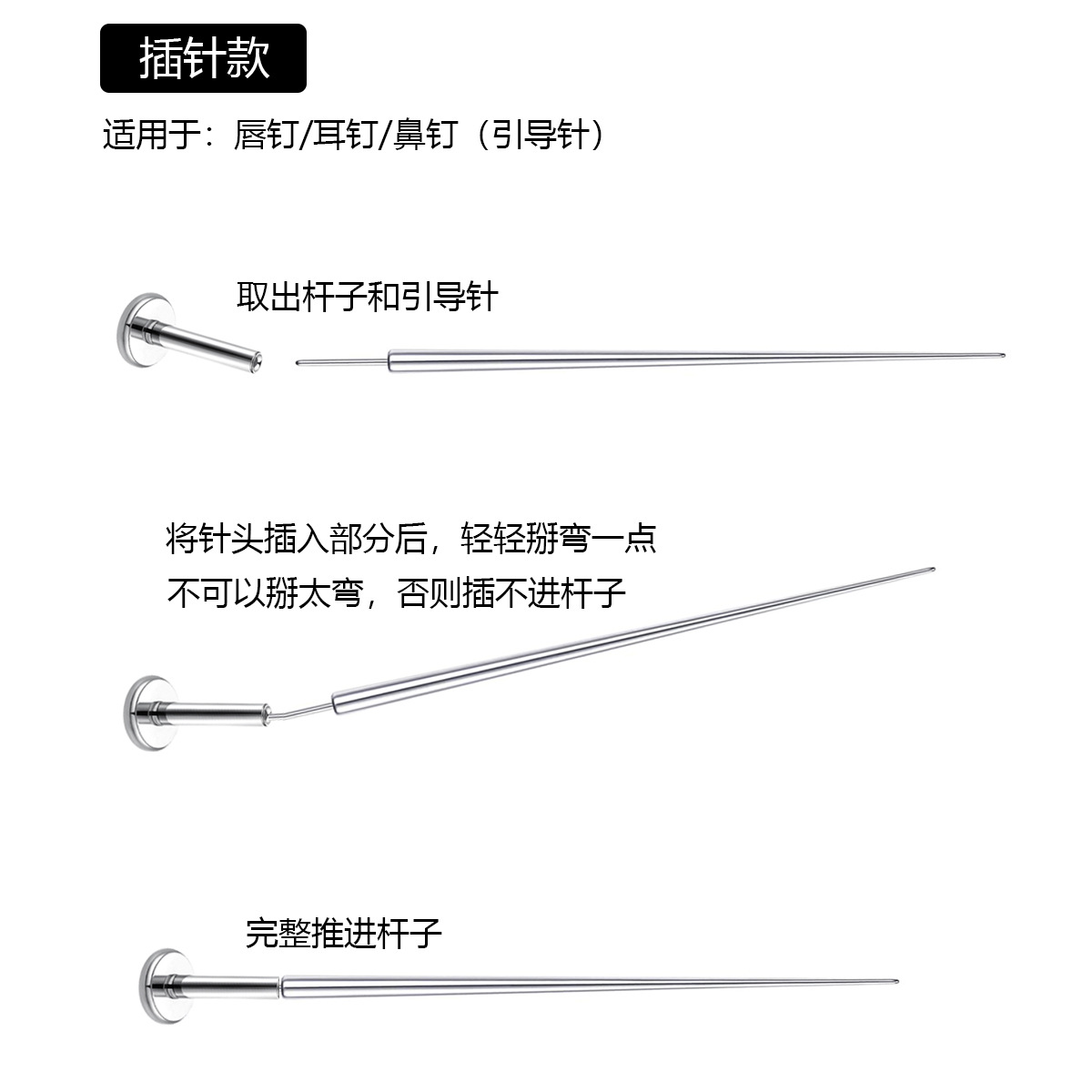 Игла для пирсинга из нержавеющей стали, направляющий стержень с внутренней резьбой, внешняя резьба, игла для захвата пирсинга
