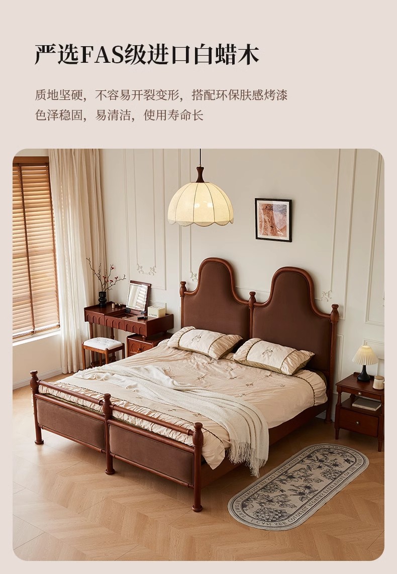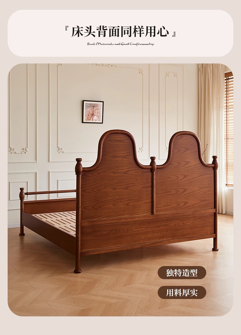 Французская ретро кровать из ясеня, свадебная кровать, двойная кровать из бука 1.8м