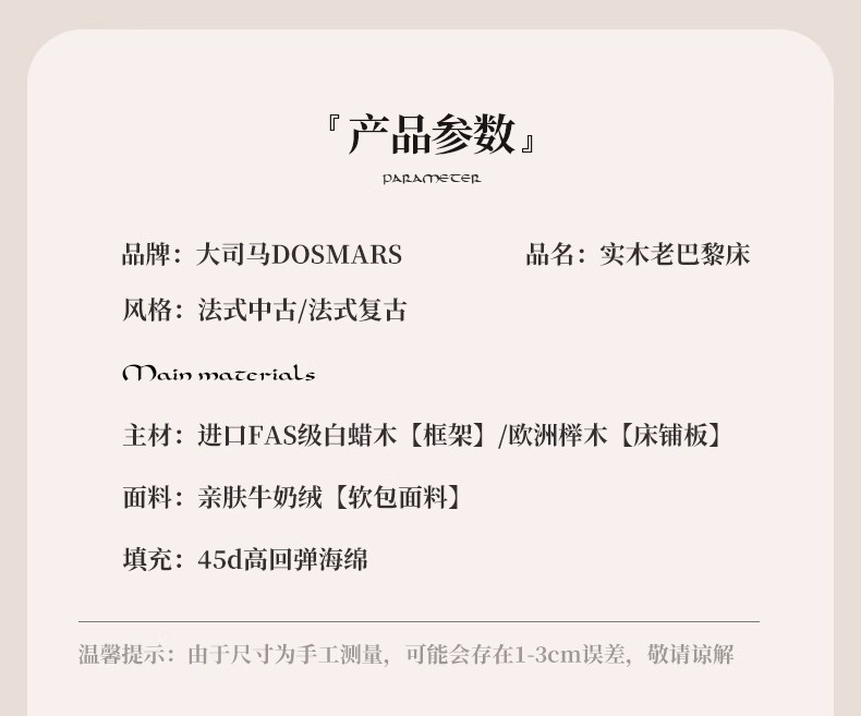 📦 | Old paris bed + rosa bedside table*1 | 1500mm*2000mm | ¥3800.0 / ≈ 46 221 ₽ | 1000 | 5964299047385 | |