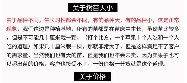 ![]() | 2 trees [can remark the variety, default is random 3-year-old seedlings] + 40cm (inclusive) - 50cm (exclusive) | ¥19.8 / ≈ 241 ₽ | 2000 | 5799767249688 | |