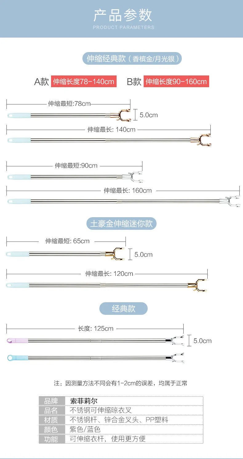 Телескопическая сушилка для одежды из нержавеющей стали Sophie Lelier, вешалка для одежды, палка для сбора одежды, вилка для одежды