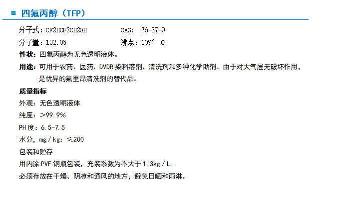 Растворитель перфлуоропропанола, очиститель 2,2,3,3-тетрафлуоропропанола 76-37-9, синтетический промежуточный продукт