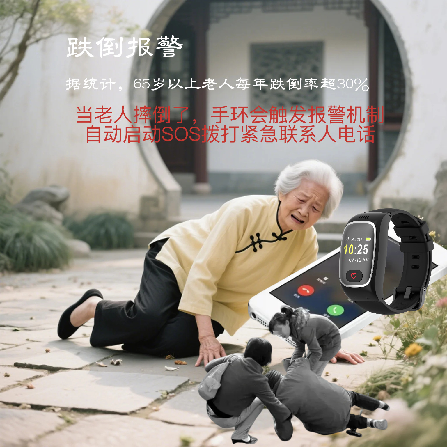 Браслет для пожилых с GPS, мониторинг давления и пульса
