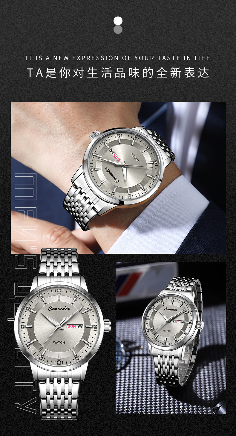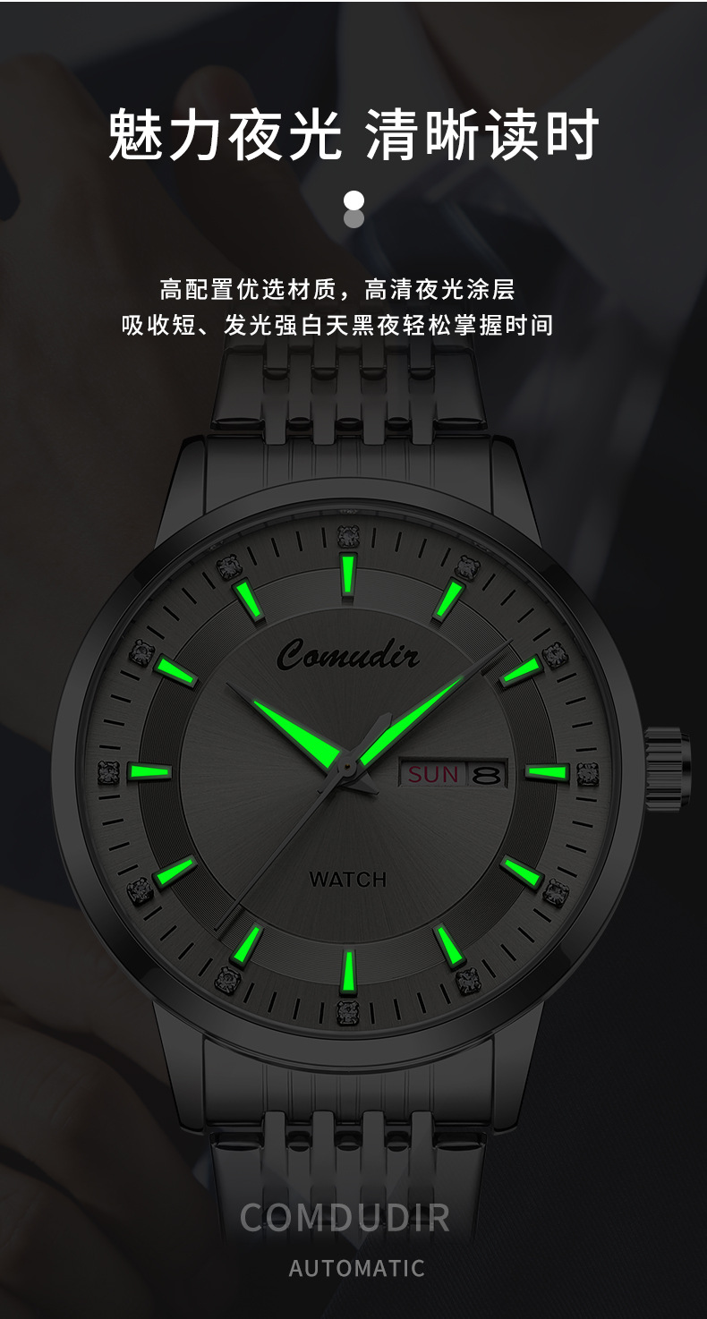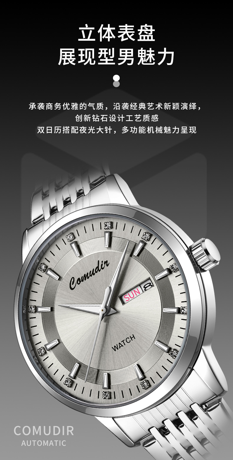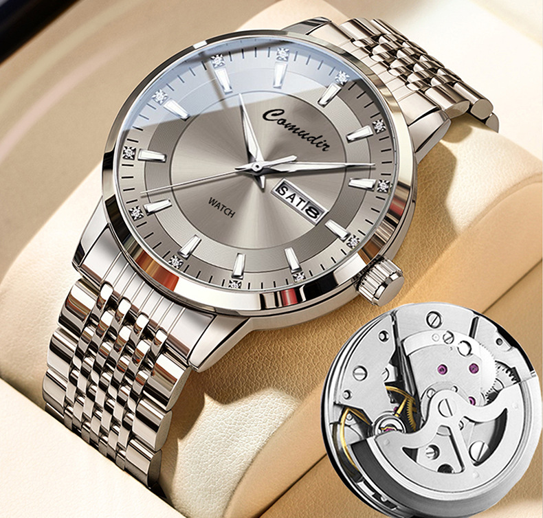 Мужские часы имитация полностью автоматические механические, с двойным календарем, кварцевые, швейцарские