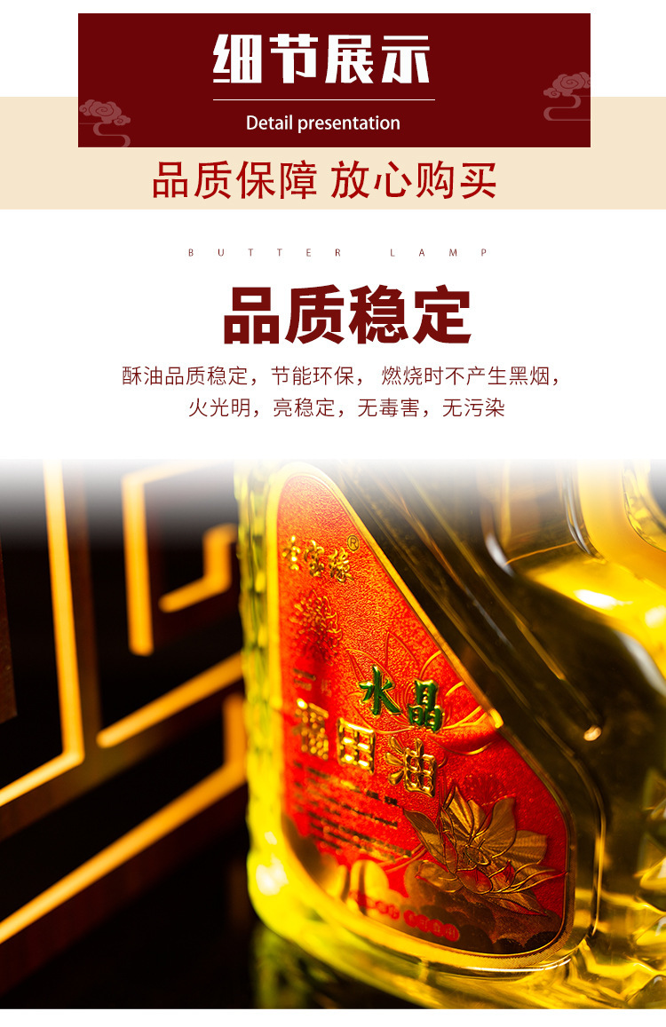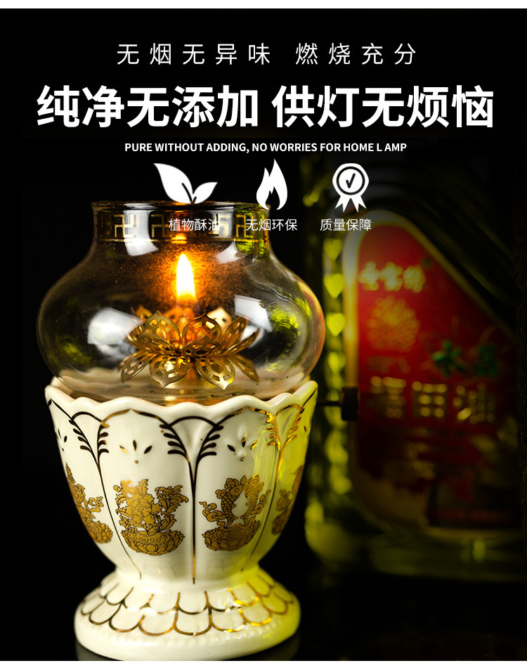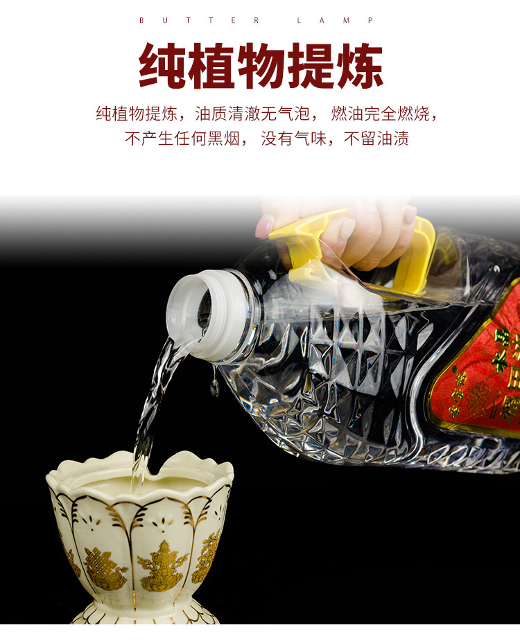 由于我们家液体油为天然植物酥油,未添加任何人工成分或混合劣质油品,来保证燃烧时无烟无味的优质体验。