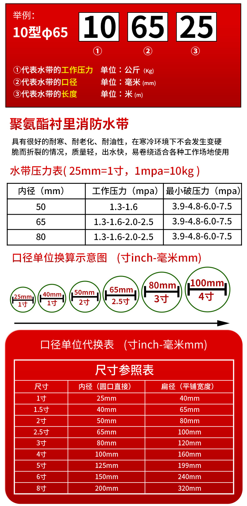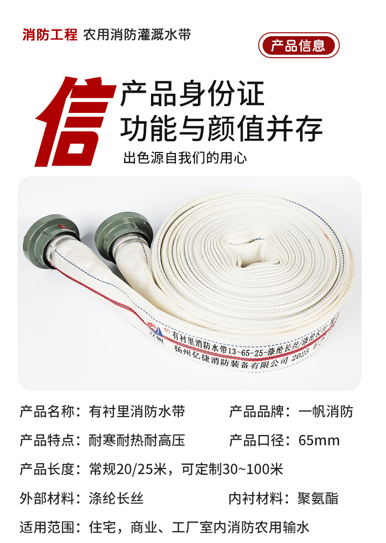 Пожарный шланг национального стандарта 13-65-25 с интерфейсом, калибр 65мм водопровод 2.5 дюйма 20/25.1 м тип интерфейса