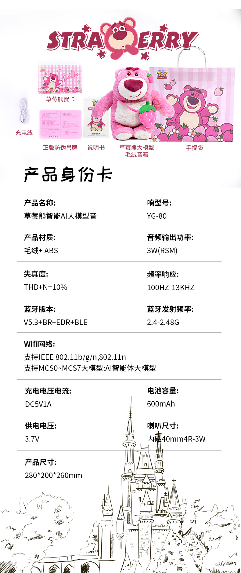 产品系列:迪士尼 名称:毛绒大模型智能AI音箱 型号:YG-80