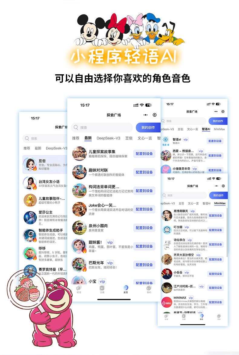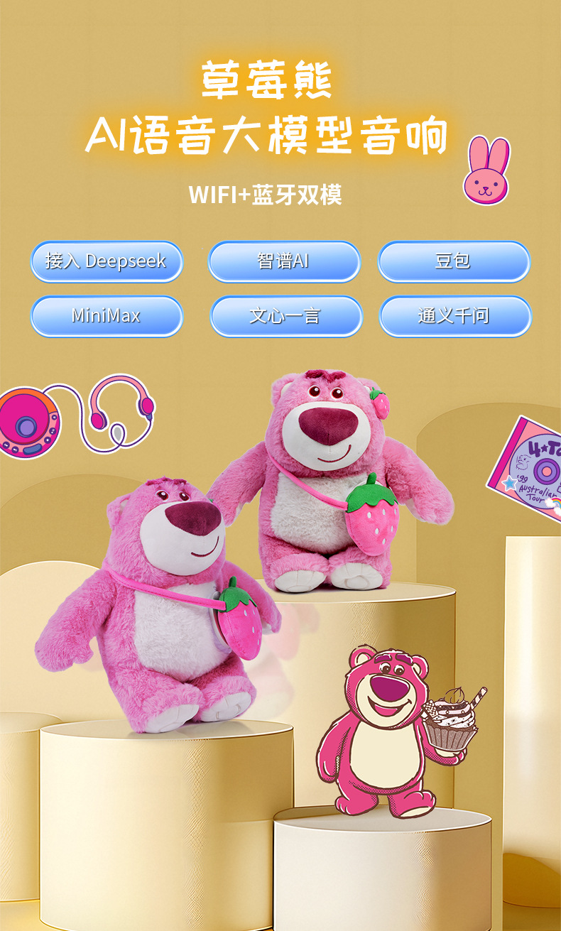 Disney Клубничный Медведь Мягкий Вайфай Динамик Мешок для Бобов Умный Deepseek Большая Модель Умный Компаньон Динамик