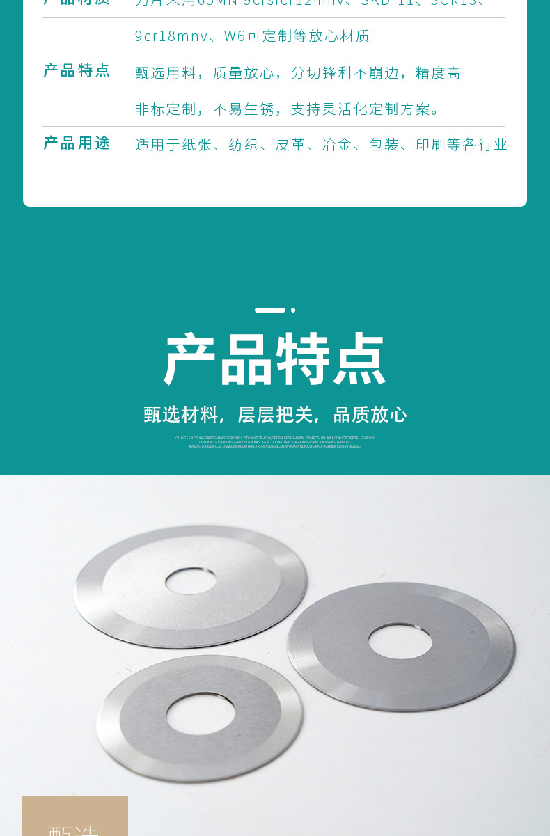 Острый и износостойкий плоский круглый нож для резки многослойной пленки, производитель круглого ножа для резки много материалов, пакетная обработка