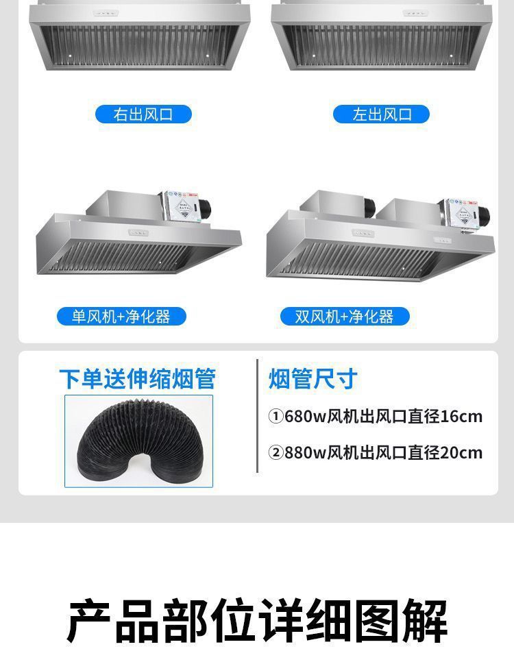 Вытяжка для ресторанов, большая мощность всасывания, нержавеющая сталь