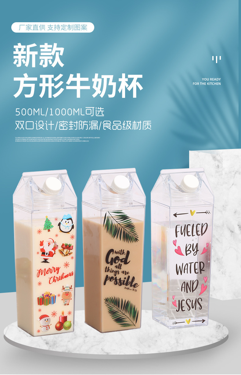 Кросс-браузерная квадратная молочная чашка 500мл, прозрачная, вращающаяся, запечатанная, для хранения напитков 1000мл