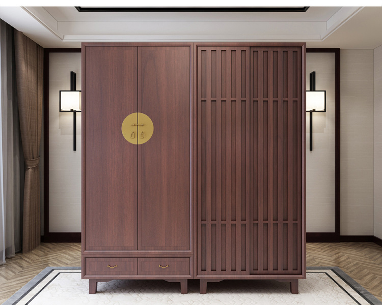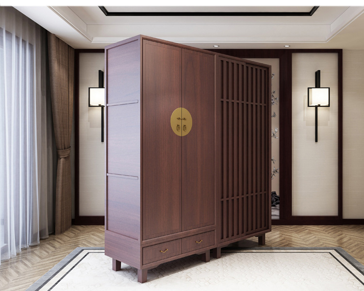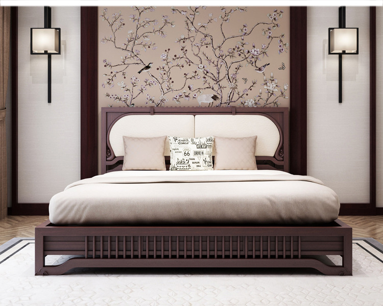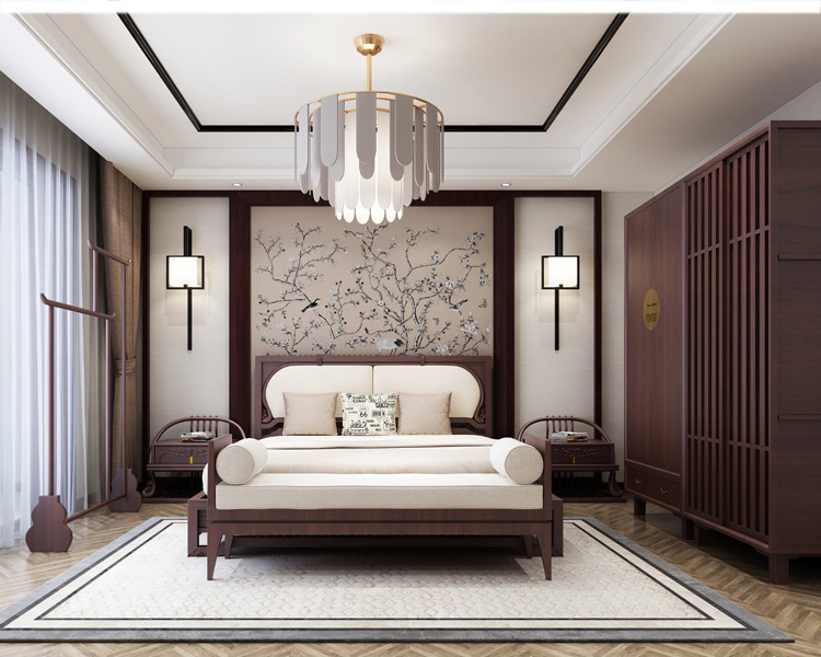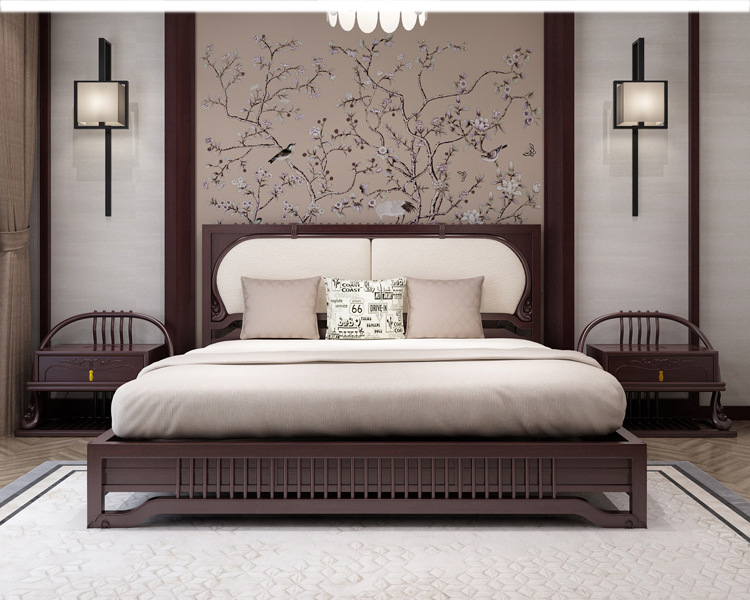 Новый китайский стиль, кровать из массива дерева, дзен двуспальная кровать, прикроватный стол, вешалка для гардероба, комплект для спальни, свадебная кровать, вилла, простая