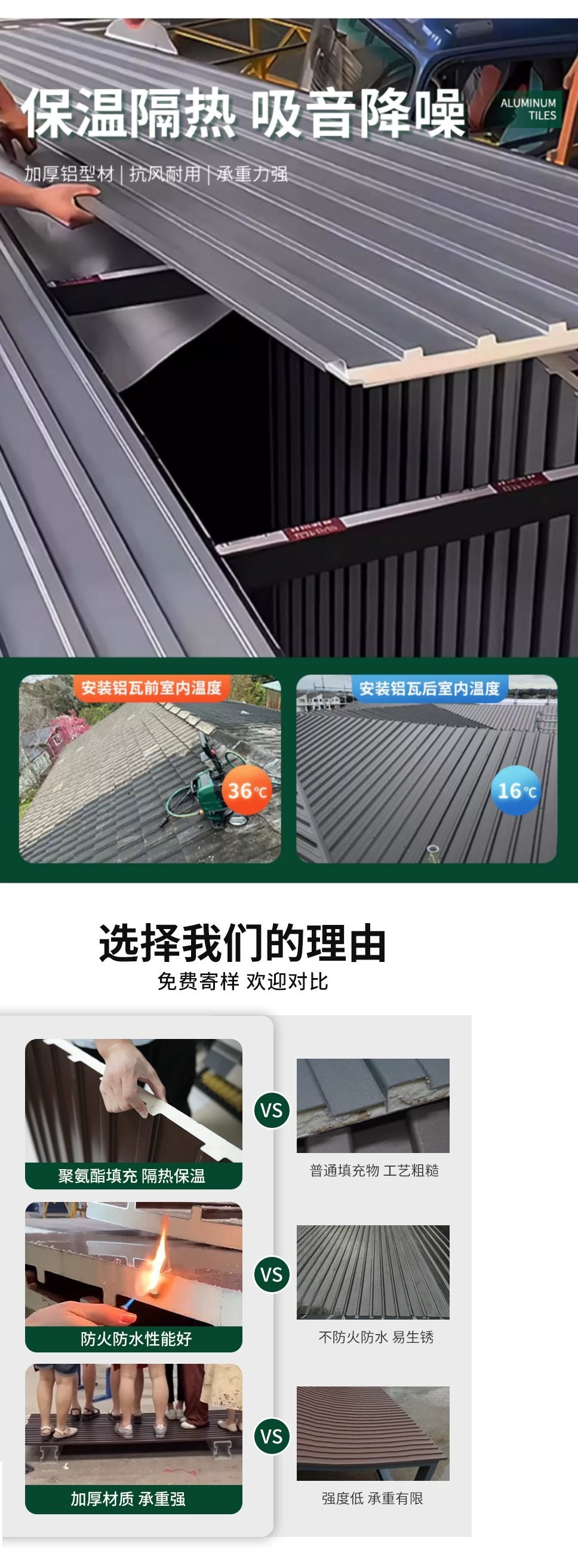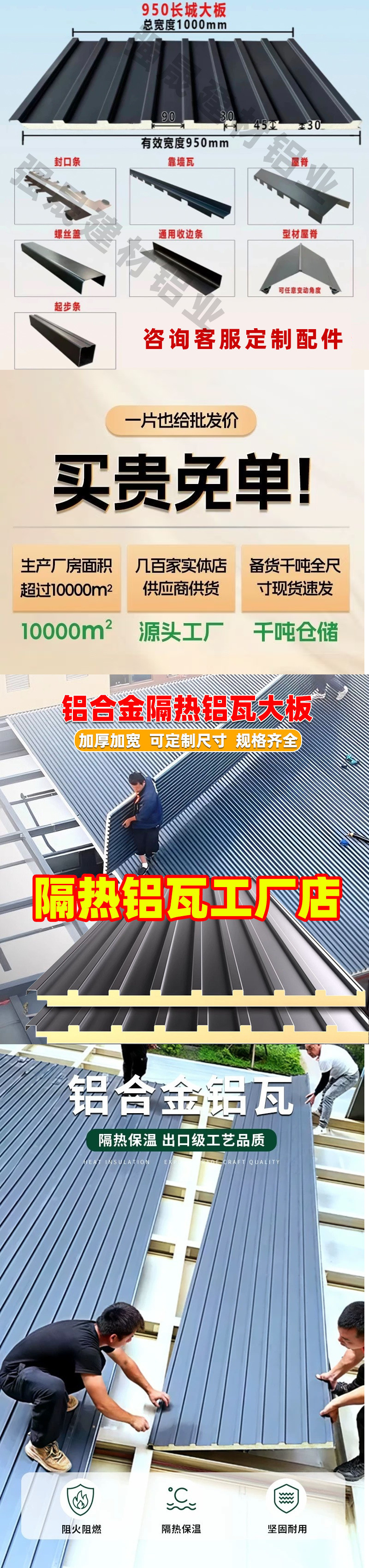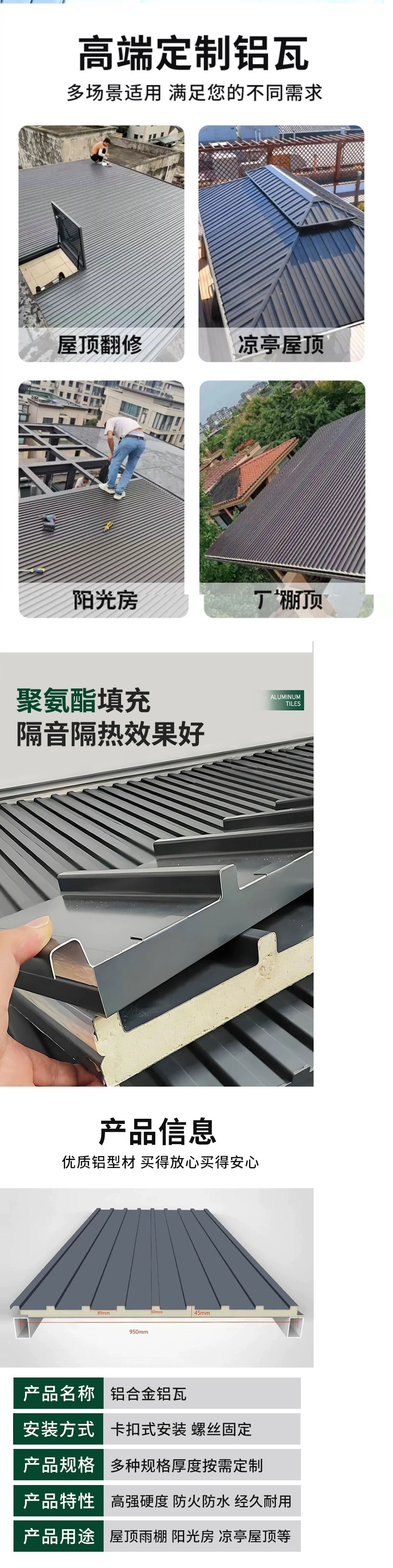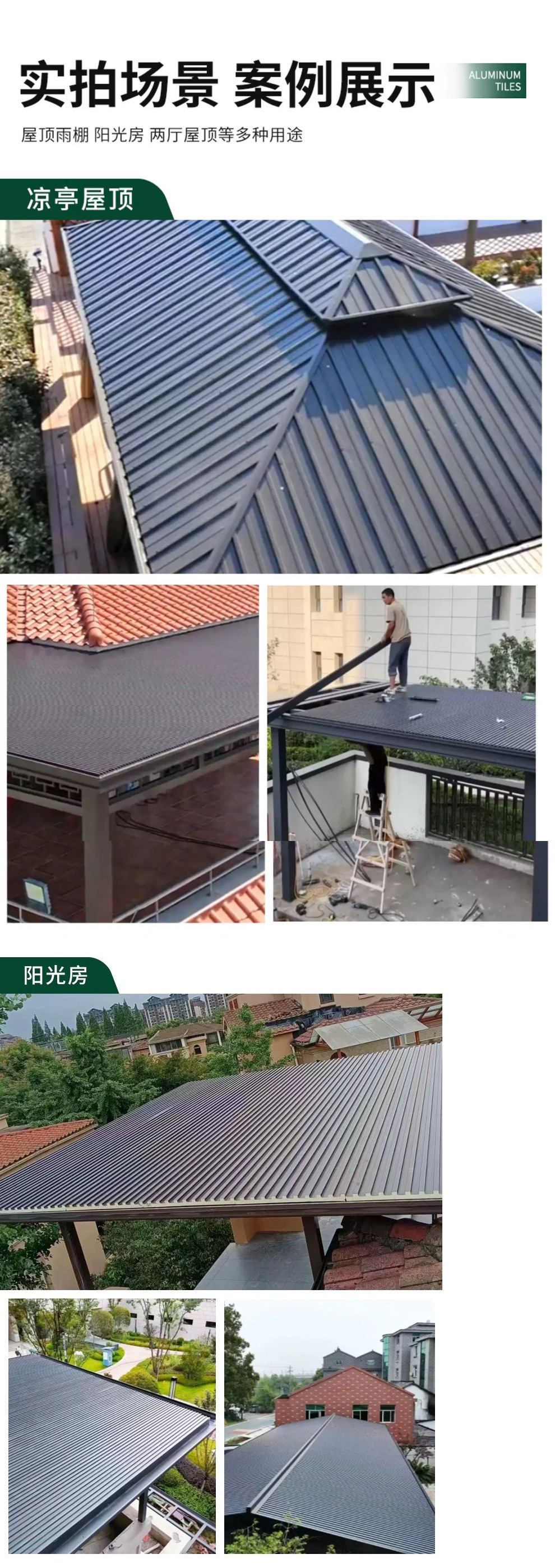 Алюминиевый сплав, большой черепичный лист, теплоизоляция, двойная утолщенная звукоизоляция, водонепроницаемая крыша, павильон для солнечной комнаты, навес, алюминиевый лист