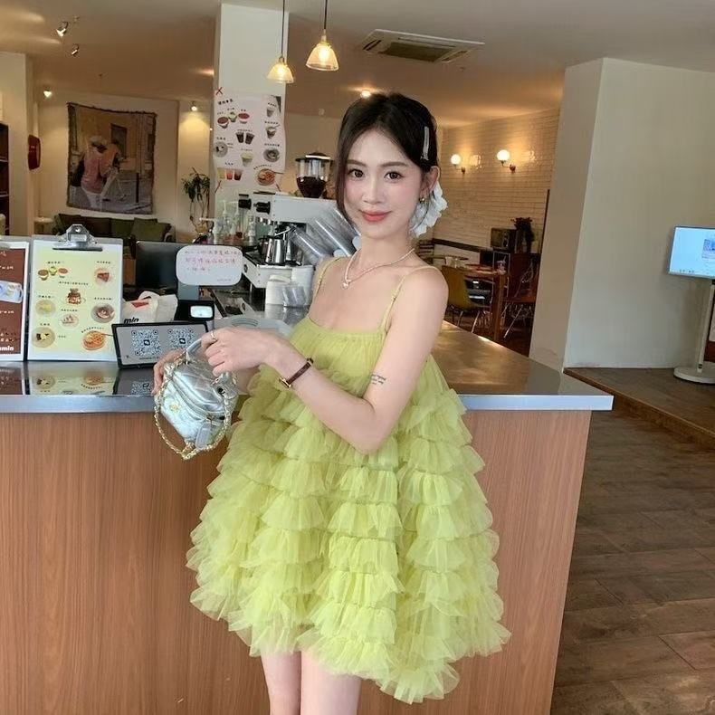 Праздничное стильное платье с сетчатыми вставками для женщин, новый стиль весна-лето 2025, стройнящее и шикарное, модная юбка