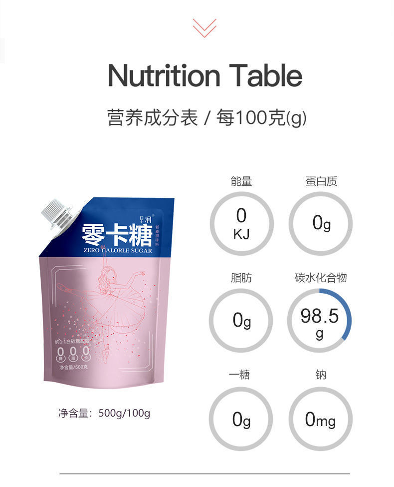 Нулевой калорийный сахар, эрритритол, стевия, 0 жира, заменитель сахара, здоровая упаковка
