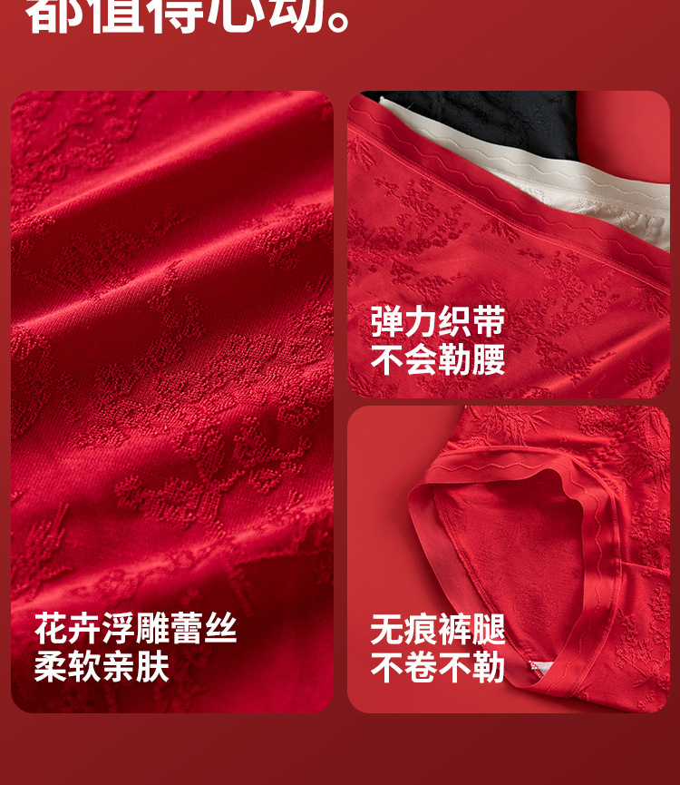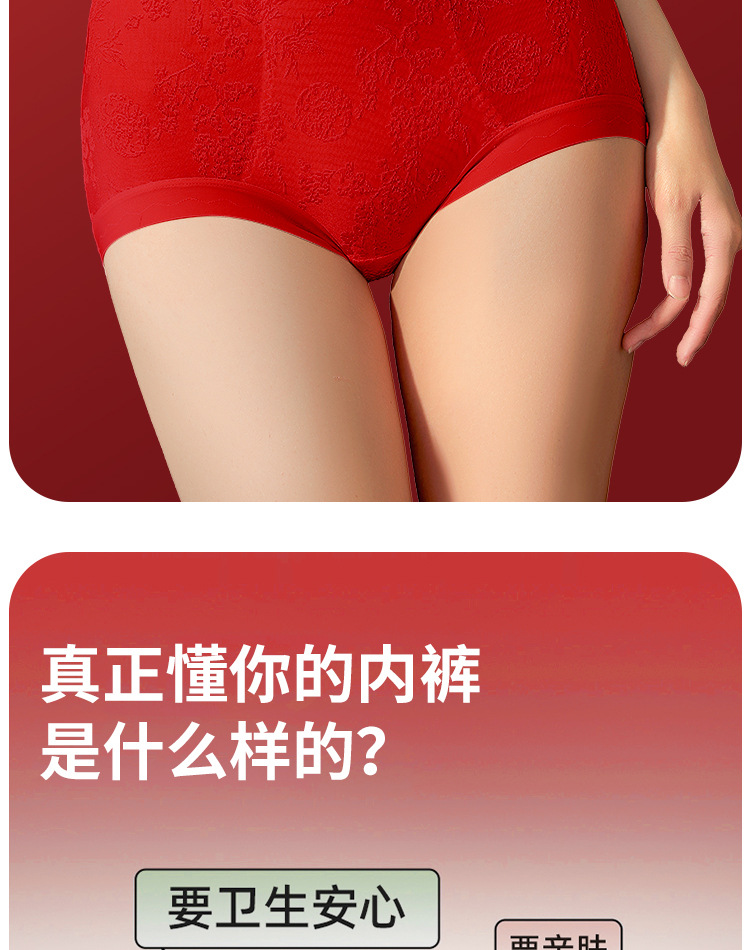 Красные трусики нового китайского стиля, женские, средней и высокой талии, 10A антибактериальные