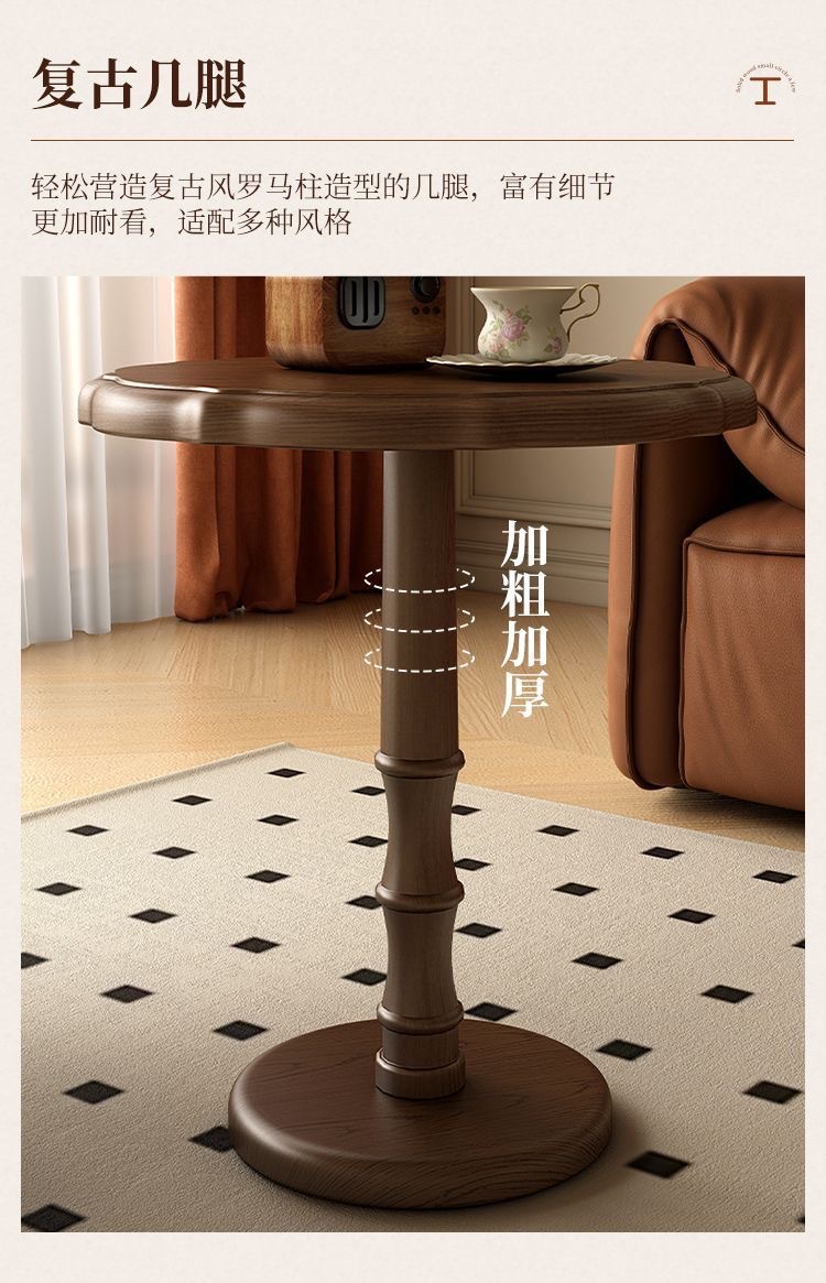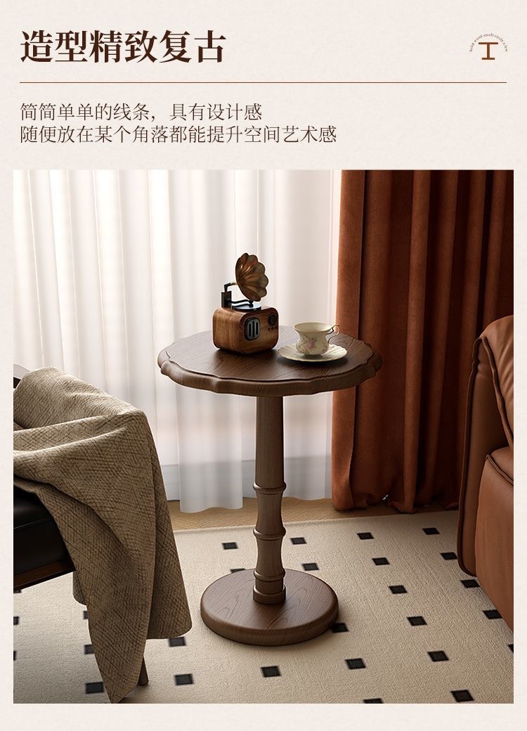Кофейный столик из массива дерева, круглый, французский антикварный, с кружевом, маленький, для балкона, для гостиной, боковой столик для дивана