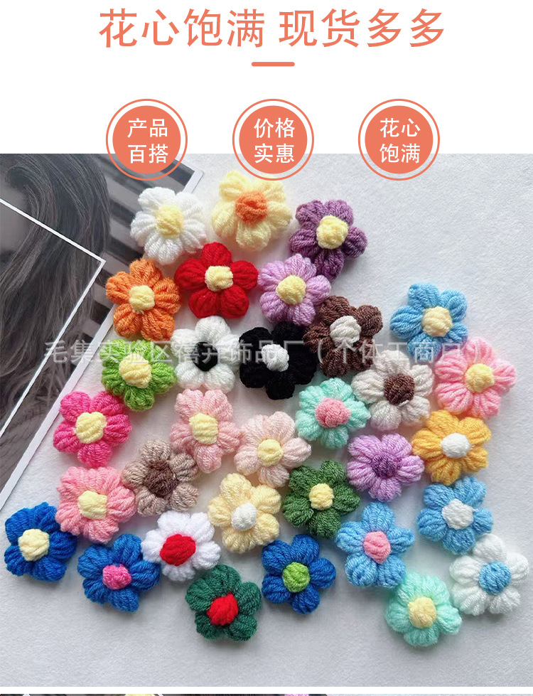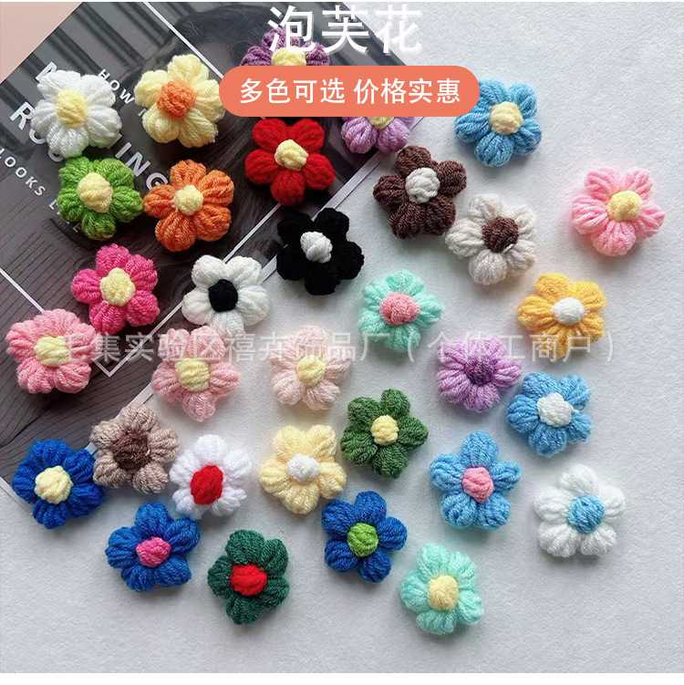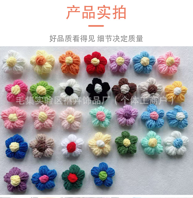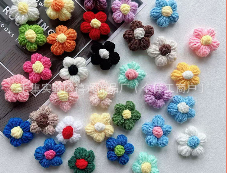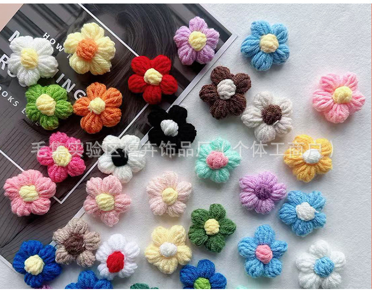 Готовые цветы из пряжи, вязаные цветы, маленькие вязаные цветы, для одежды, сумок, обуви, носок, аксессуаров, украшения с цветами