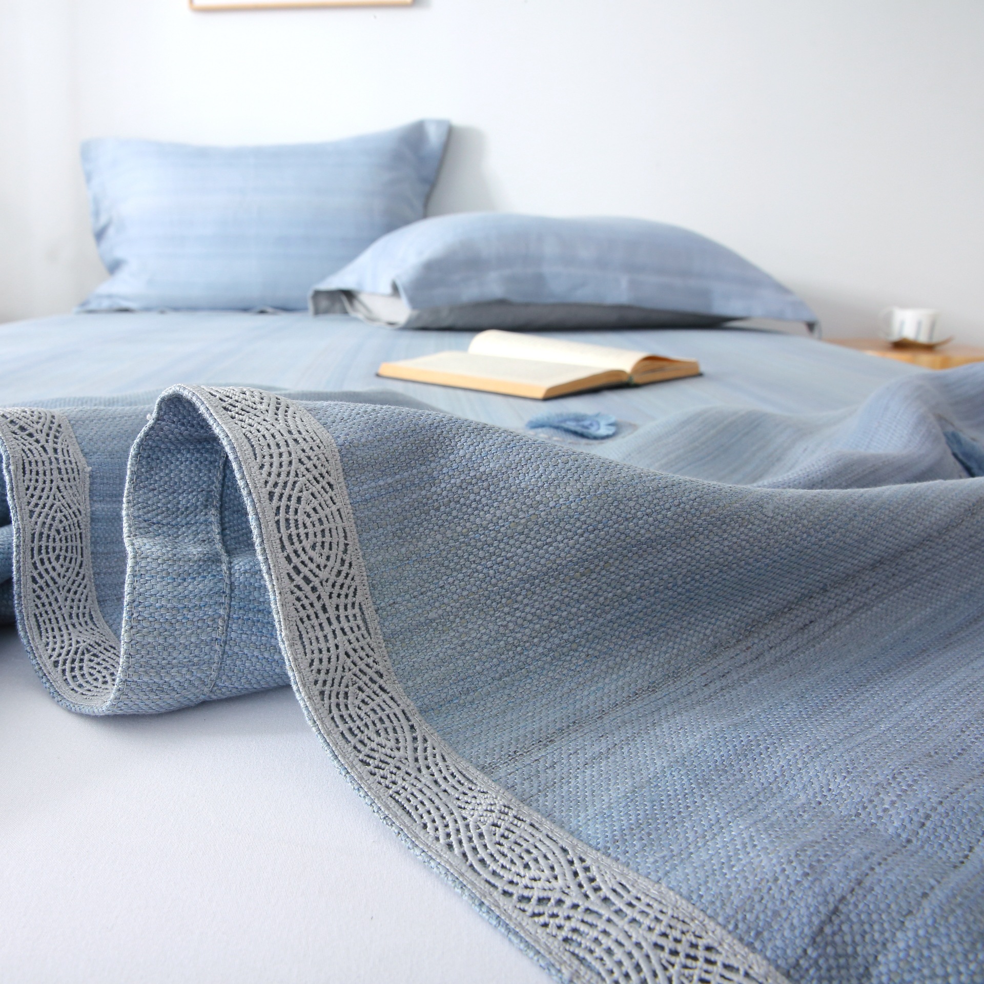 Мат из льна Yutaiyuan с окрашенной пряжей комплект из трех предметов наволочка натуральный охлаждающий мат постельный комплект