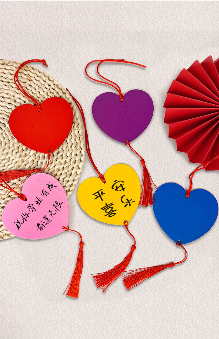 Ручные сердцевидные деревянные карточки благословений для украшения, подвесные ярлыки для живописных мест и храмов