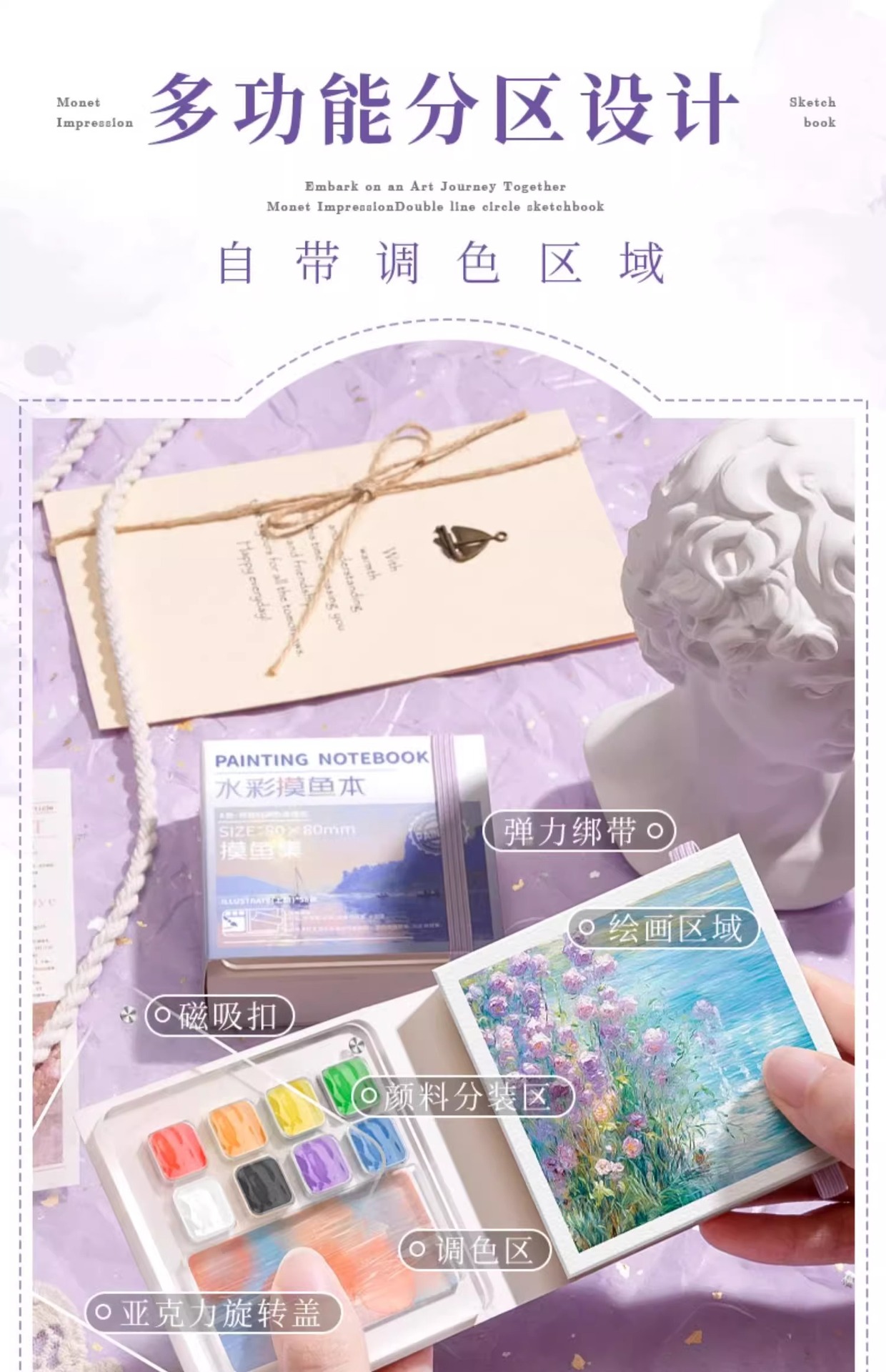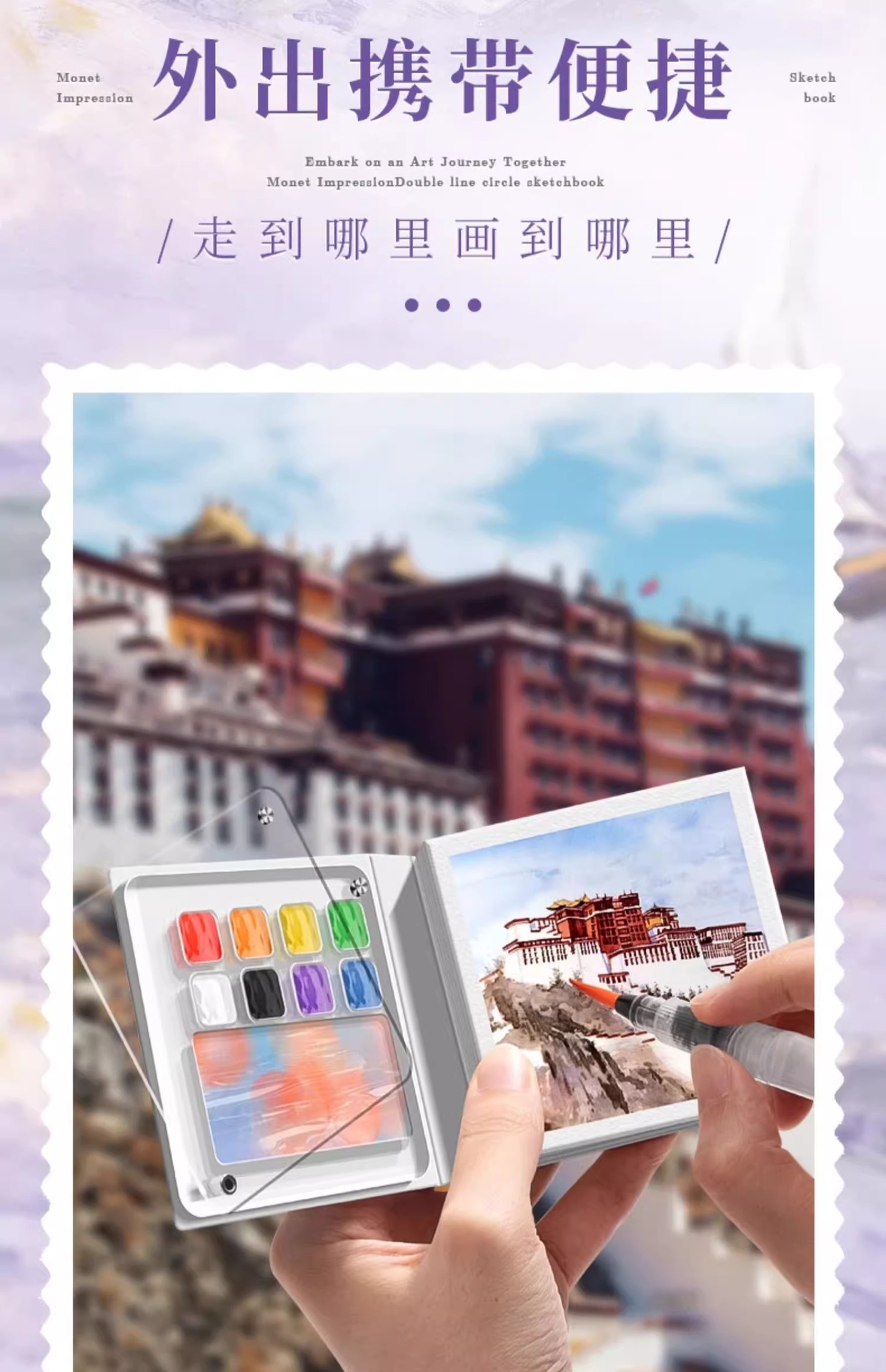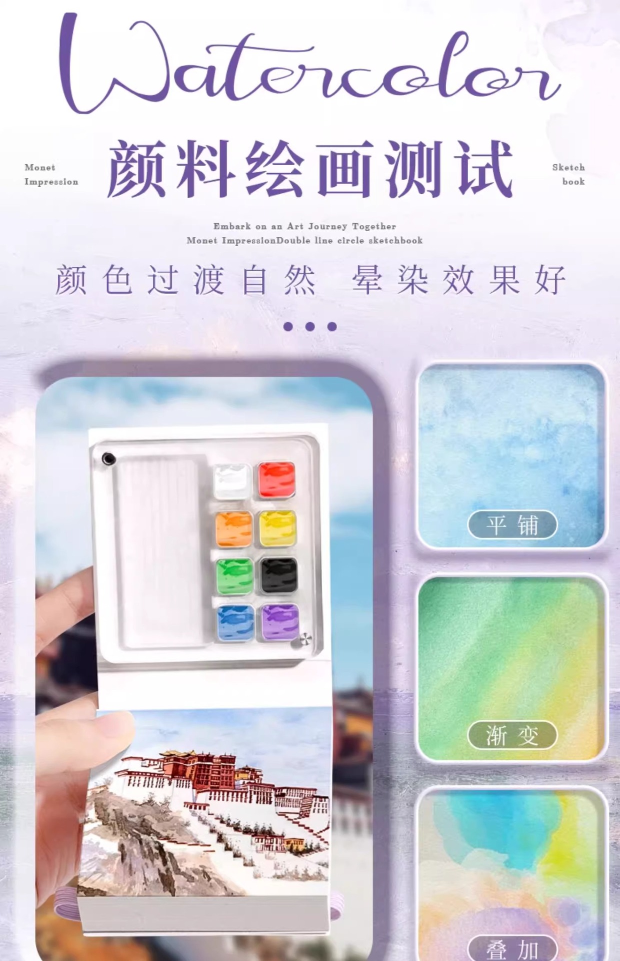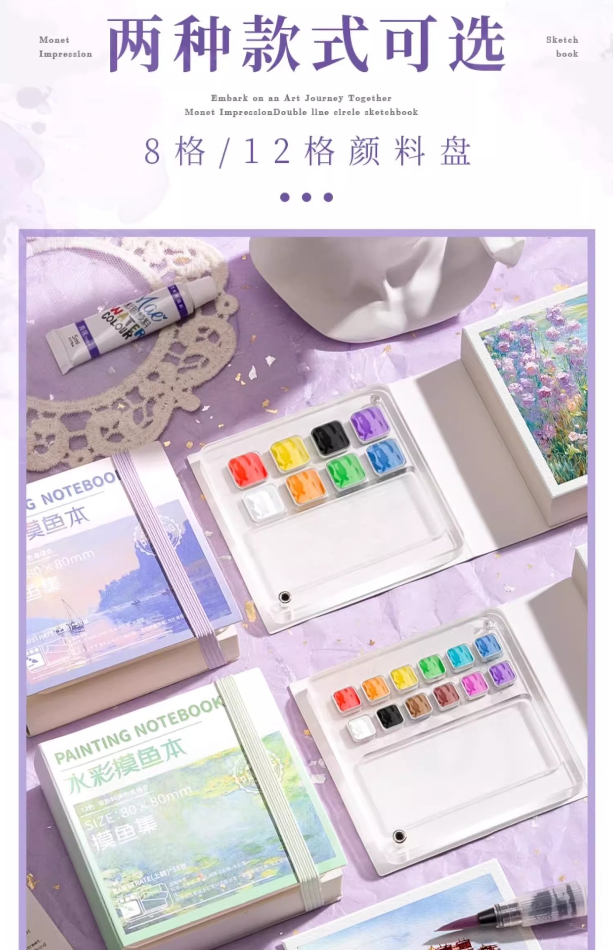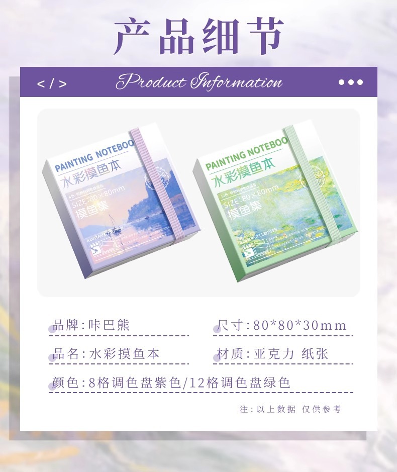 便携固体水彩颜料便携式水彩旅行套装亚克力磁吸水彩颜料分装盒