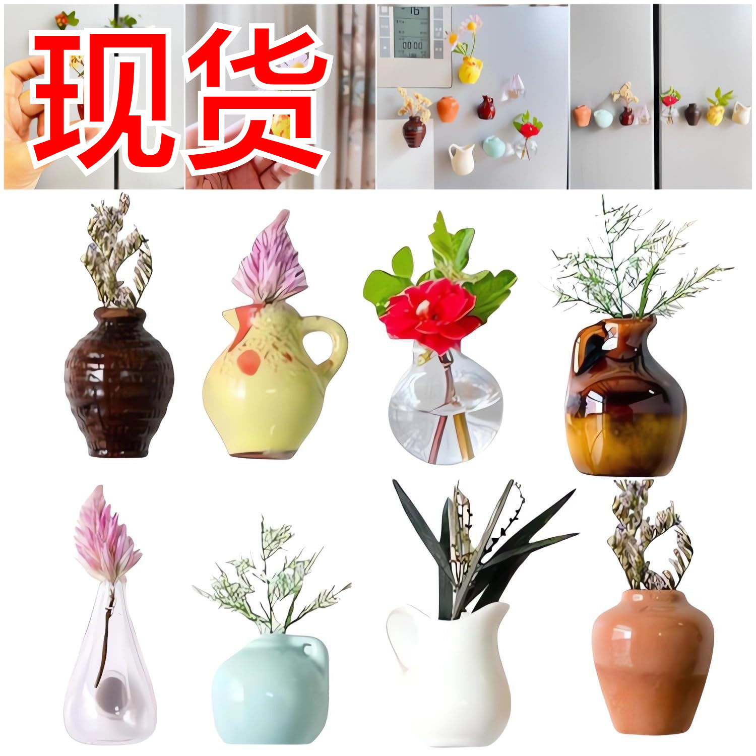 В наличии 8 штук мини-вазы-магниты, мини-аксессуары для кухни, украшение для холодильника, дерево