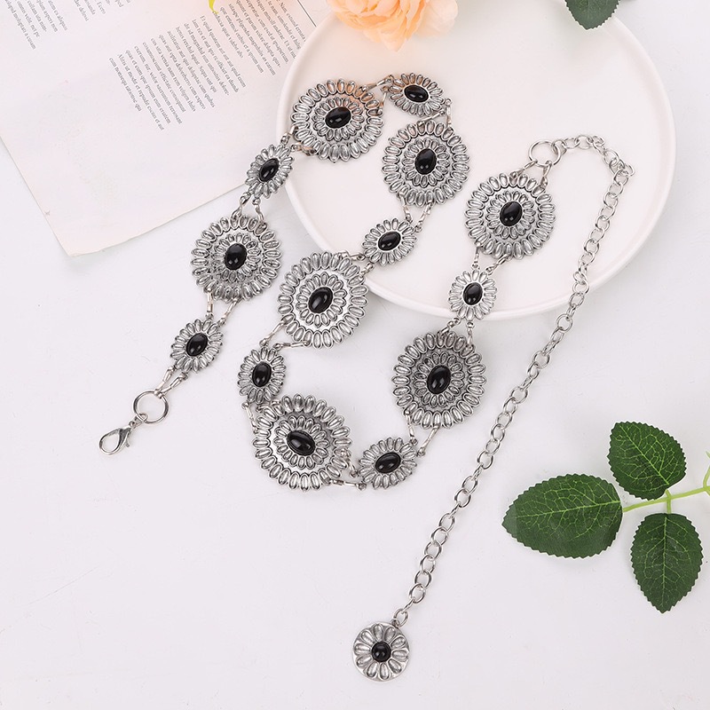 Кросс-бодрствующая европейская и американская легкая роскошная золотая цепочка для талии с бирюзой универсальная металлическая цепочка для талии сплав этнический стиль ретро