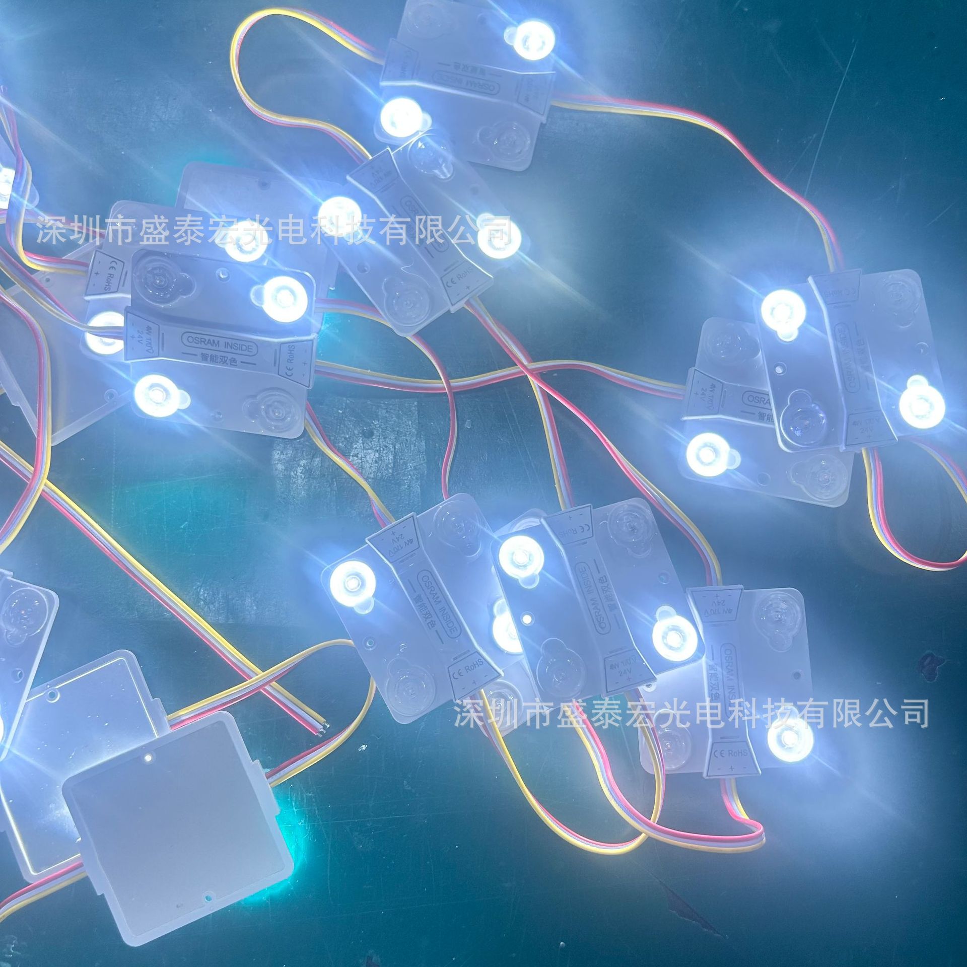 欧司朗OSRAMLED注塑区块链 尺寸:70*70 电压:24V 功率:2W+2W 25个一串,50个一包,500个一件