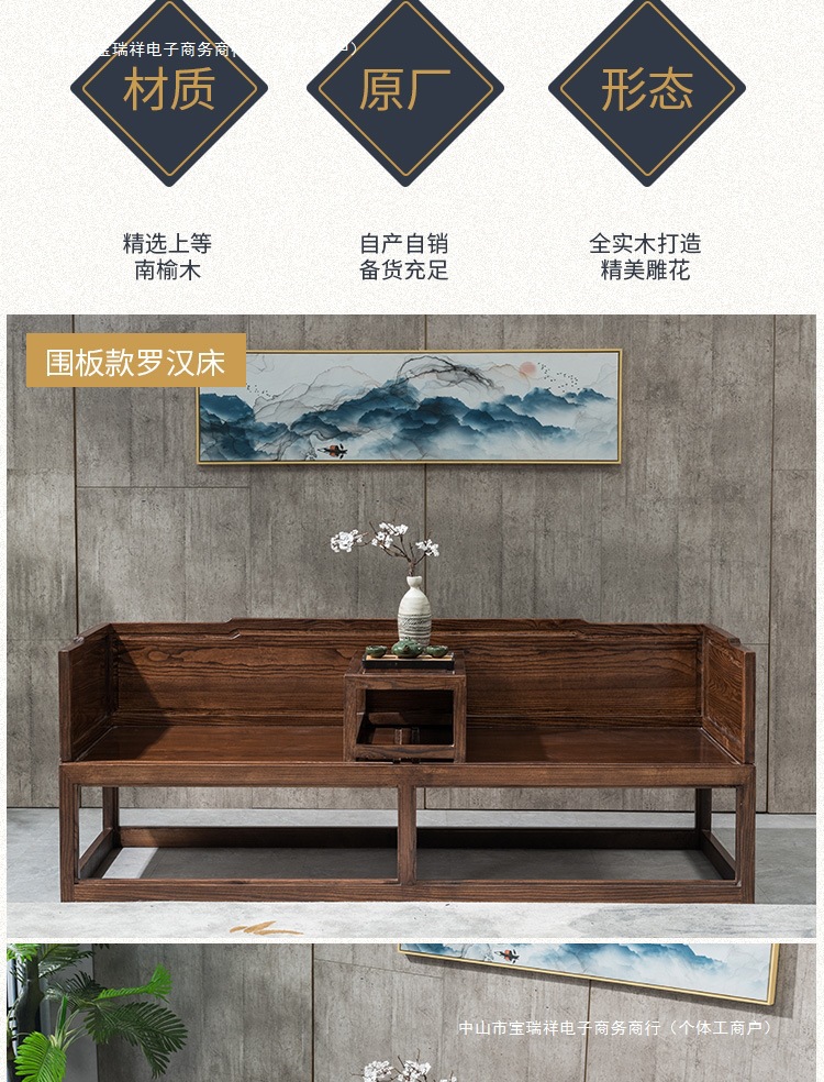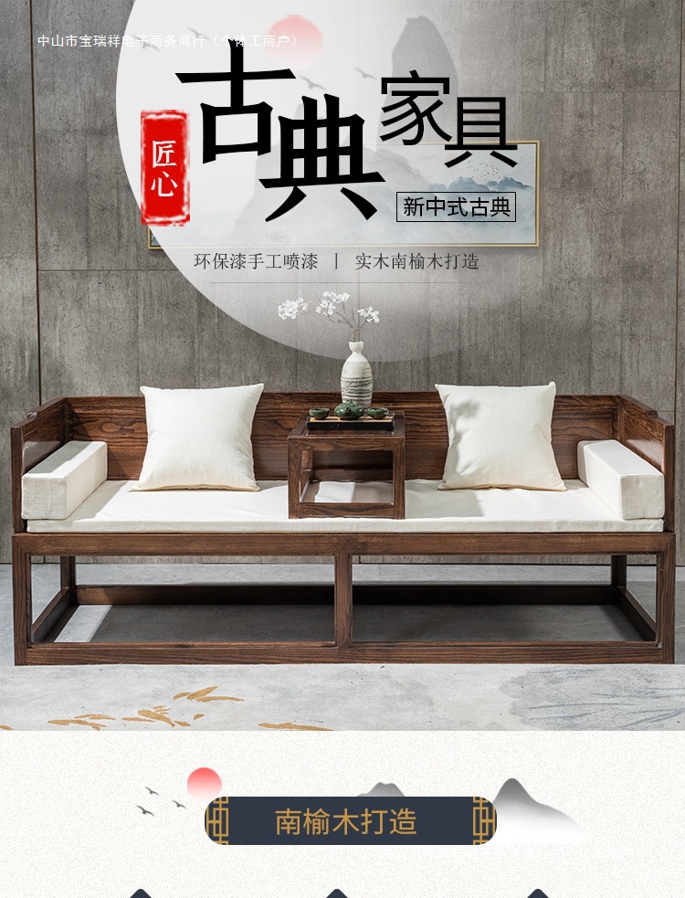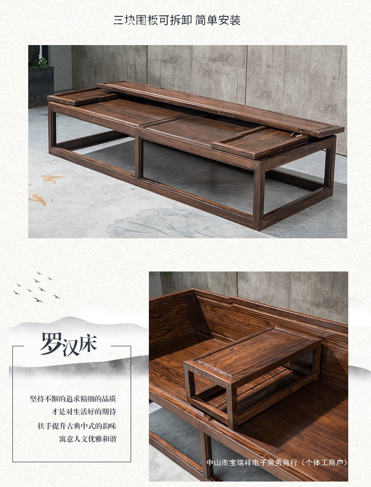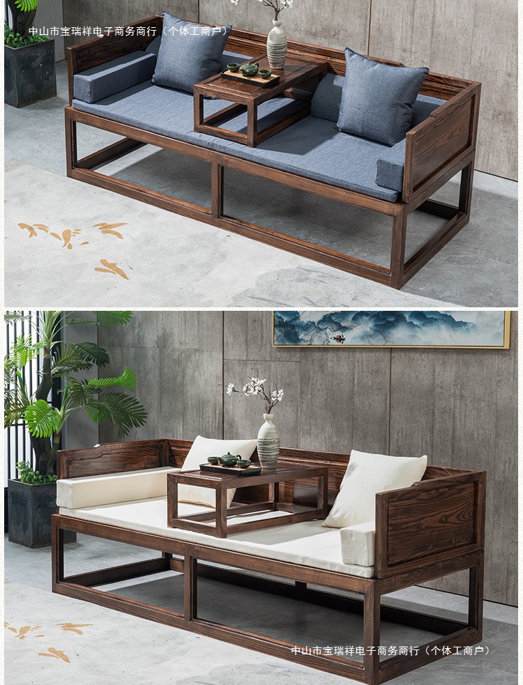 Новая китайская стильная кровать Лохань из массива дерева для небольших квартир, комбинированный диван-кровать, современный простой шезлонг, дзен-кровать