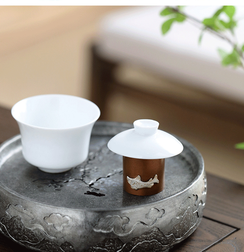 Ручная работа, крышка из меди с серебряной инкрустацией для чая