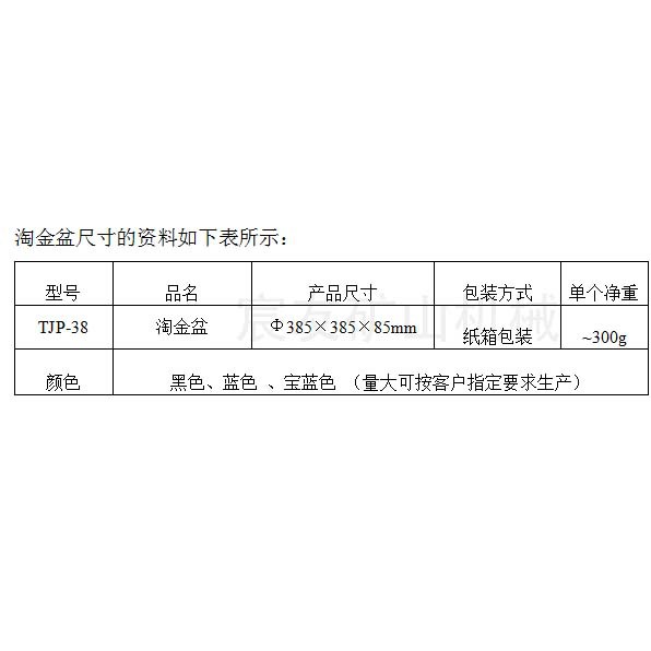 2、此淘金盆采用坚韧的塑料为原料制造具有耐摔耐磨。