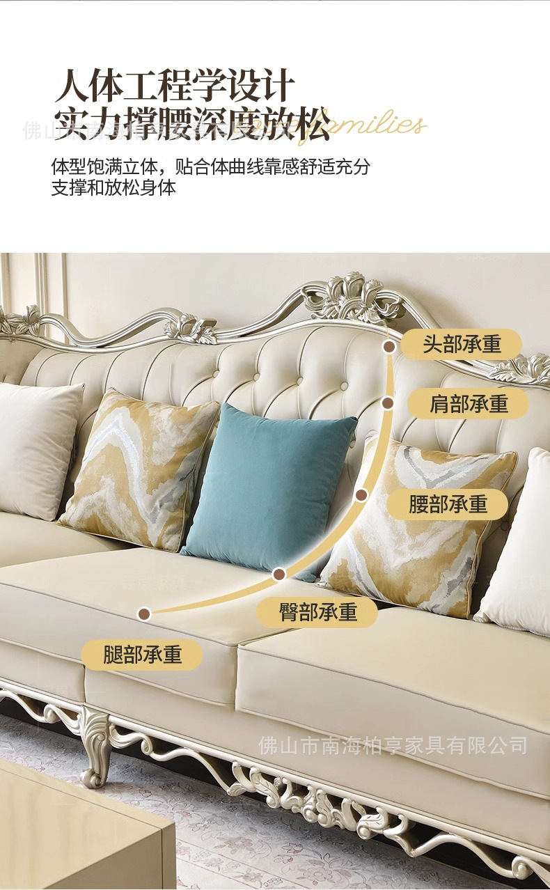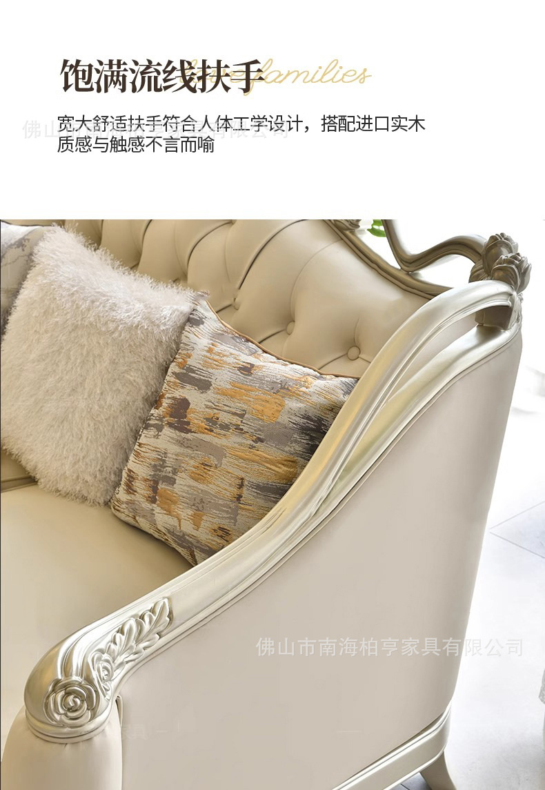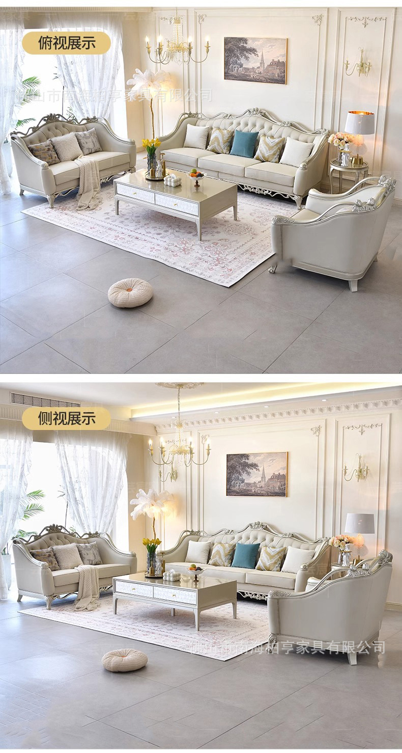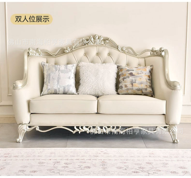 Французский светлый роскошный диван из массива дерева с резьбой и кожаной отделкой, комбинация для гостиной, американская простота, высококачественная европейская роскошная мебель