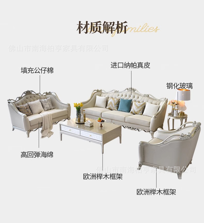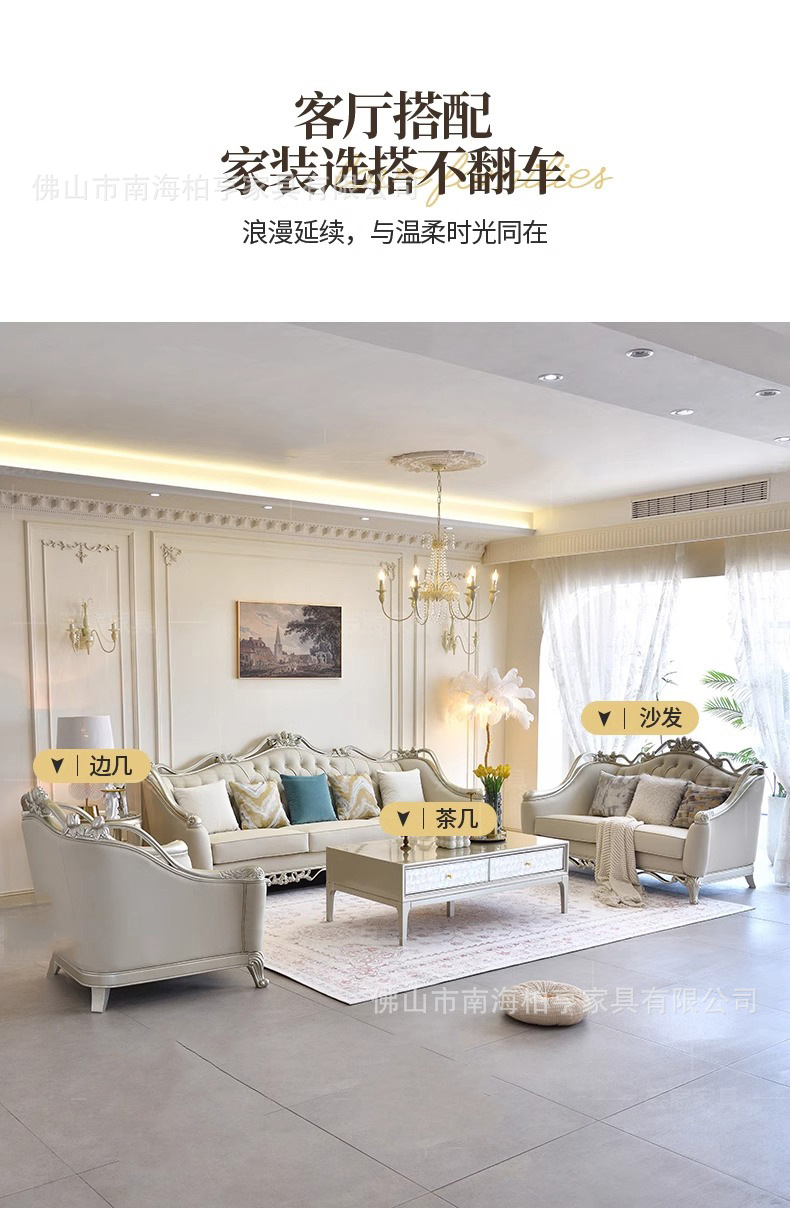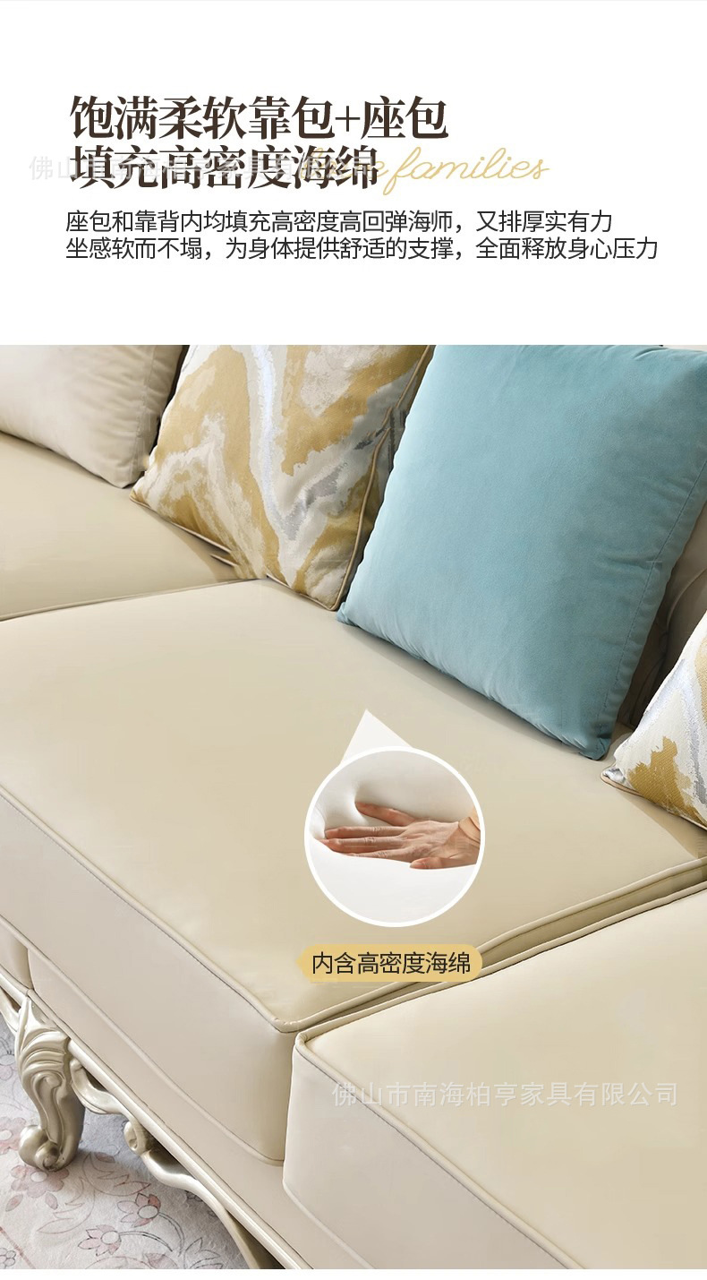 Французский светлый роскошный диван из массива дерева с резьбой и кожаной отделкой, комбинация для гостиной, американская простота, высококачественная европейская роскошная мебель