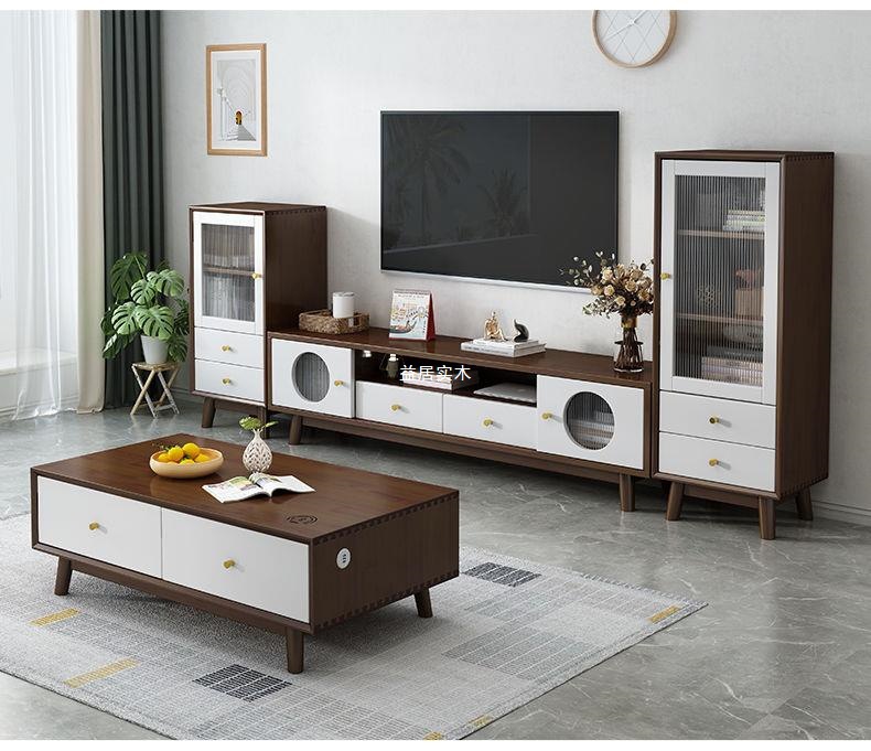 Модель Chinoiserie solid wood coffee table tv cabinet combination modern casual living room small apartment walnut color scandinavian tv cabinet