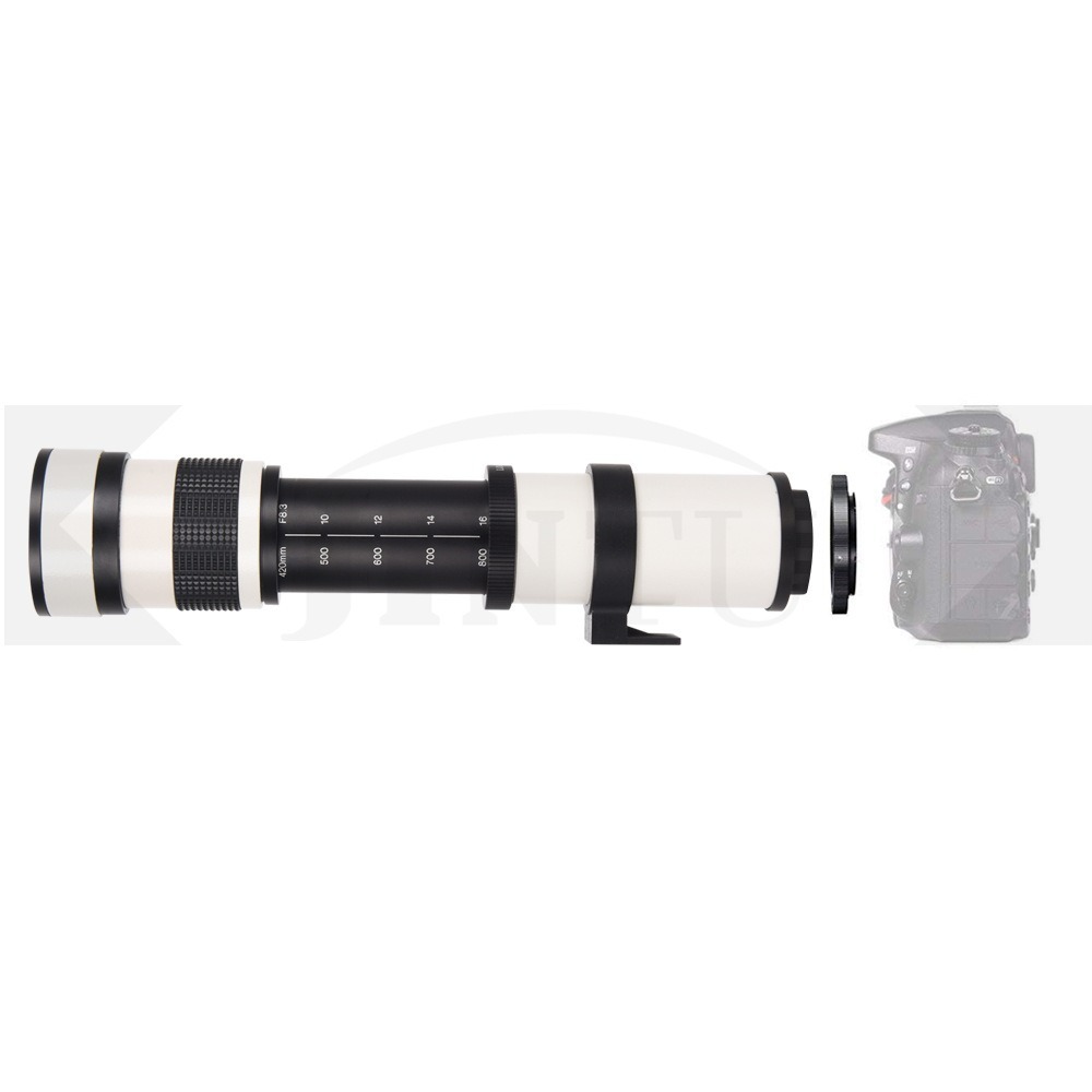 Белый 420-800мм регулируемый зум-объектив, ультра-длиннофокусный ручной объектив для съемки на улице, макро и птиц