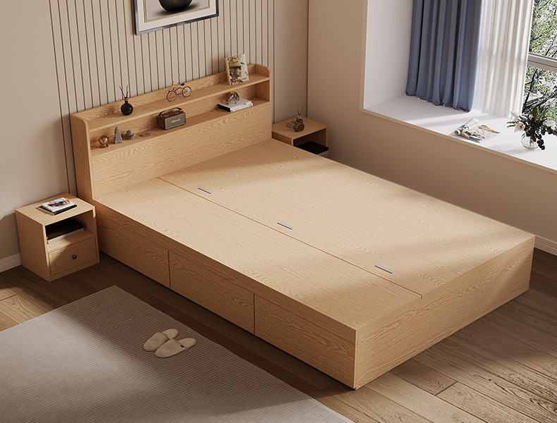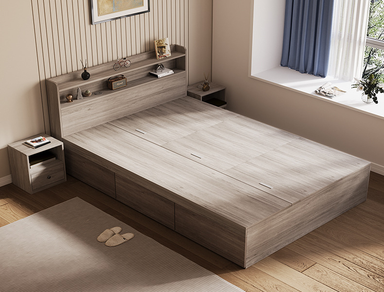 Двуспальная кровать 1.8м, татами, высокая коробка, кровать с ящиком для хранения, массивная, простая, для взрослого