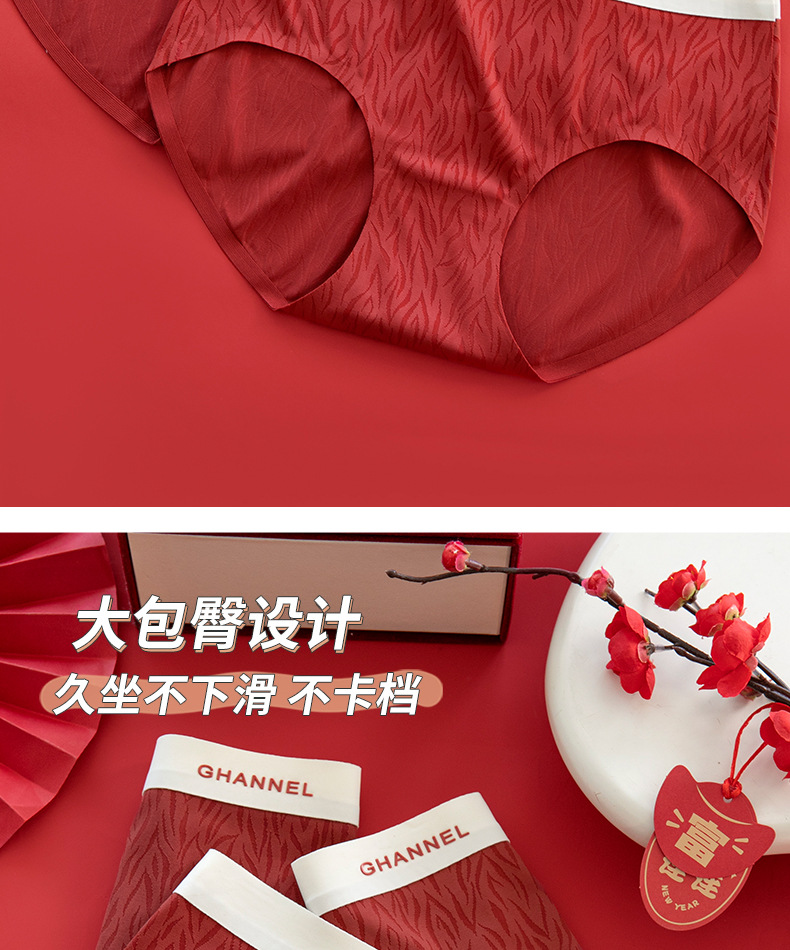 Красные трусики для года зодиака, бесшовные, из льняного шелка, оптовая продажа, большой размер