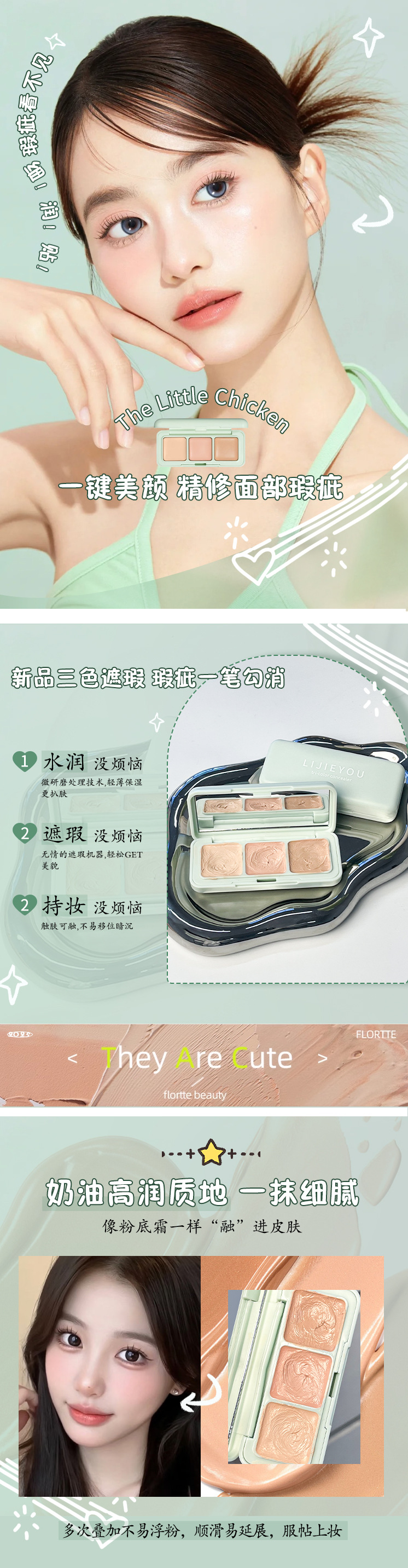Консилер Bangbang трехцветный квадратный, маскирующий пятна, акне, темные круги и слезные борозды