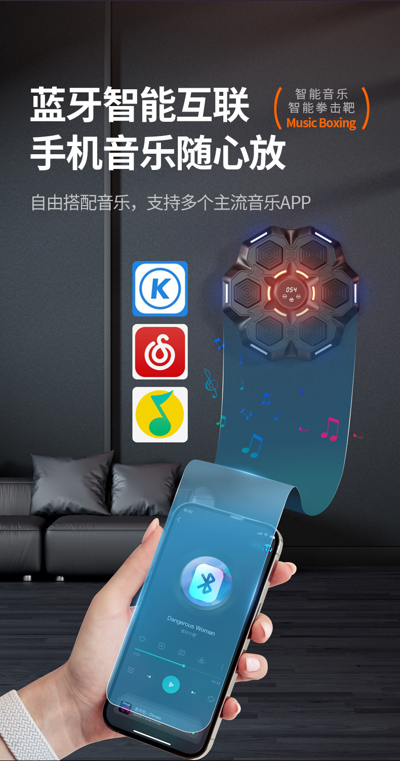 Популярная смарт-боксерская мишень с Bluetooth и музыкой, настенная мишень для дома, тренировка для взрослых и детей
