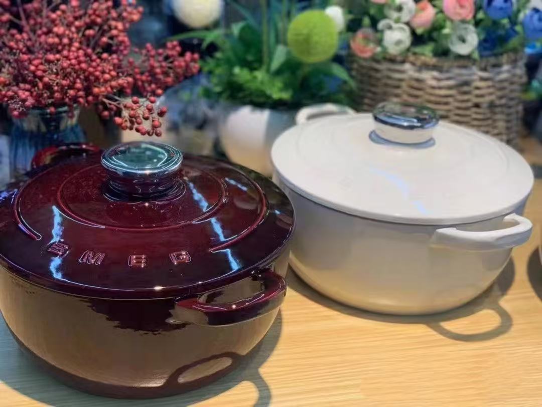 Импортная эмальированная кастрюля Smeg 24см, чугунная, утолщенная, для супа