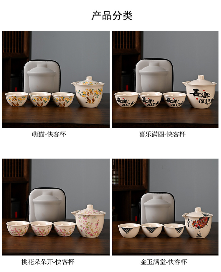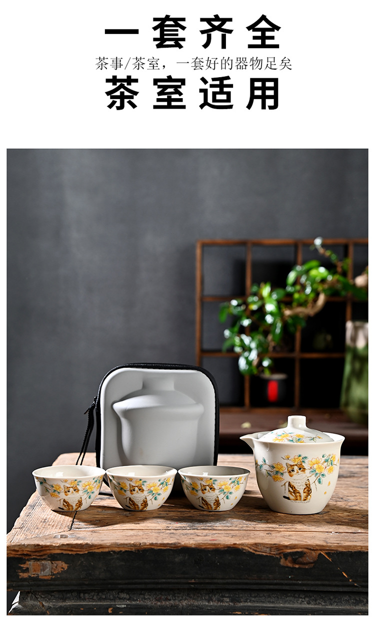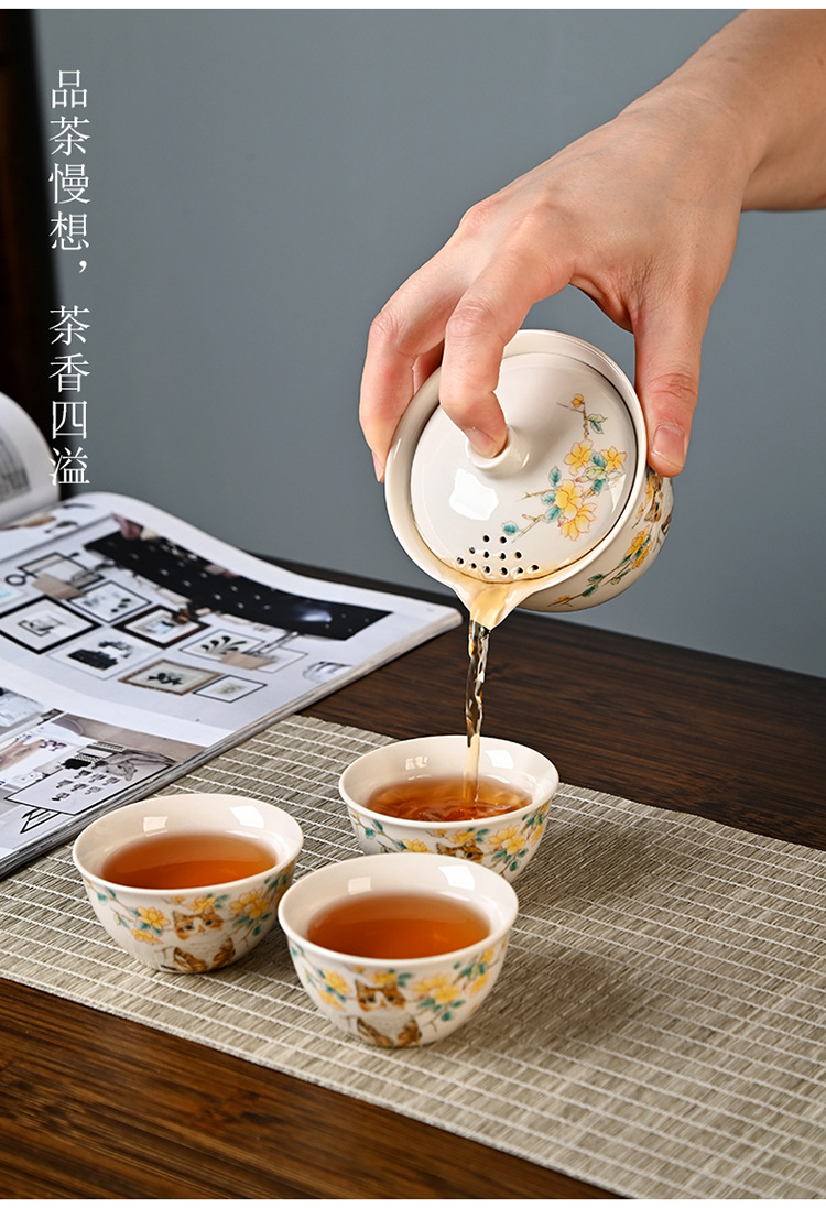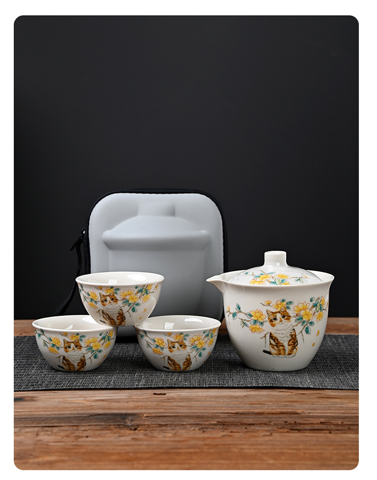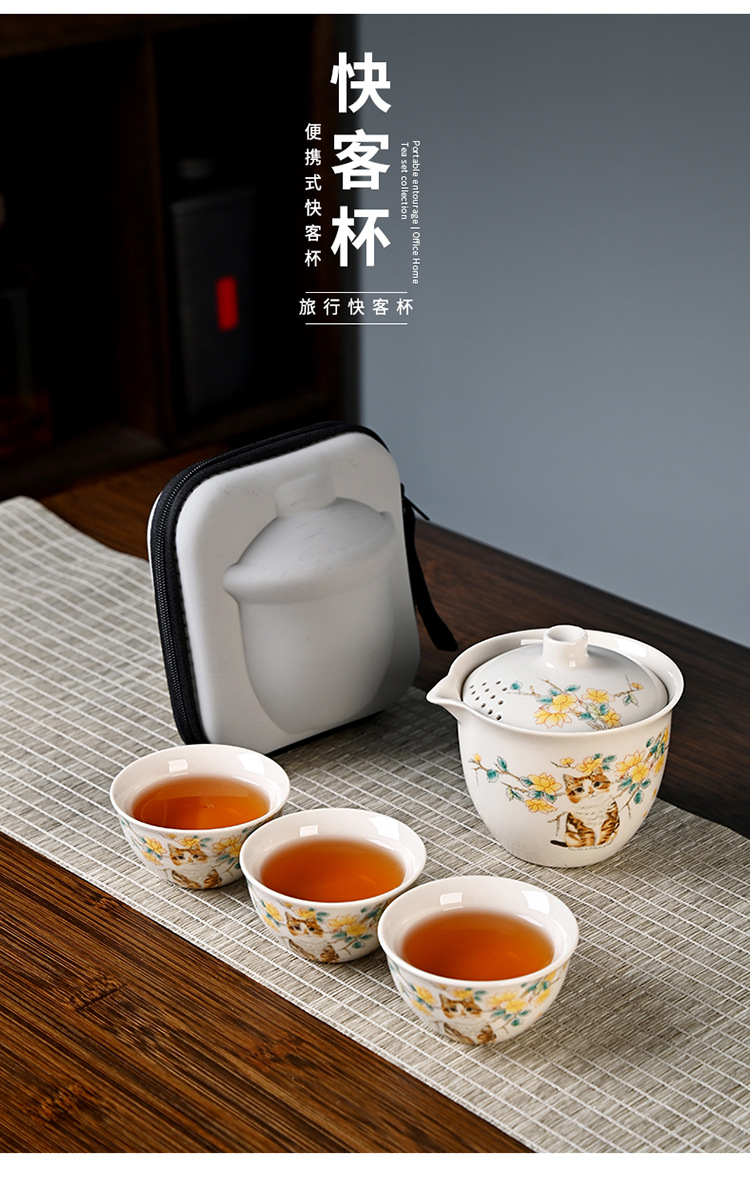 Чайный набор из ру керамики, портативный, один чайник и три чашки, подарок на заказ