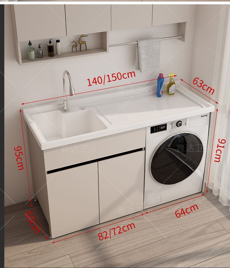 Комбинированный шкаф для стирки с раковиной и стиральной доской, алюминиевый, для балкона