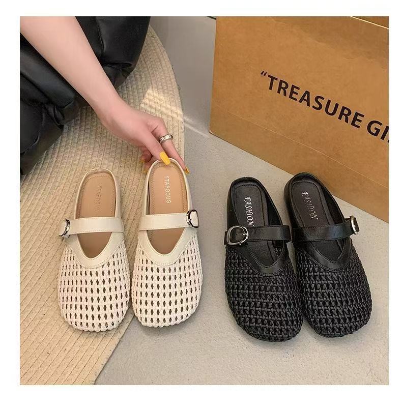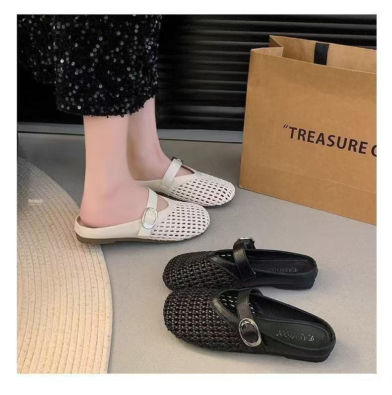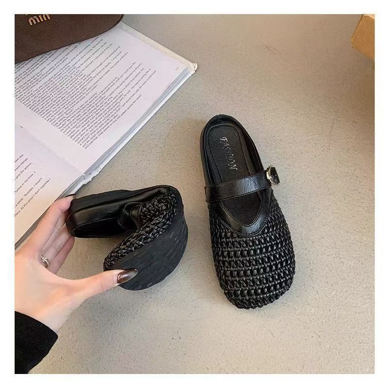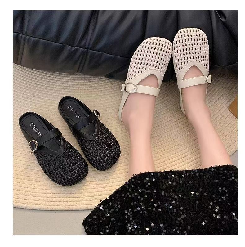 Вязаные дышащие тапочки 2025 года, летние сандалии для женщин, французские плоские полутеплые тапочки