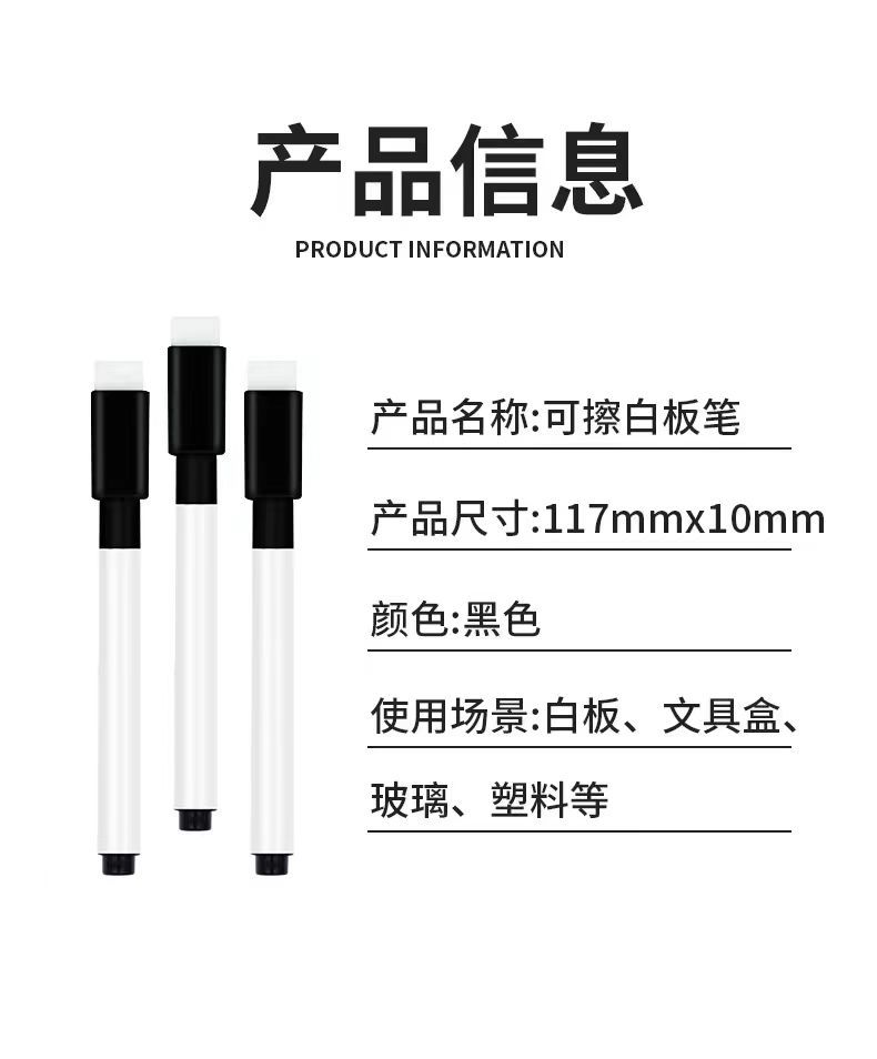 Оптовая черная стираемая маркерная ручка для белой доски, экологочистая, водоразбавляемая, магнитная, можно печатать логотип