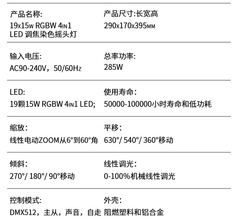 Светлый цвет 19pcs 15w rgbw 4in1 led