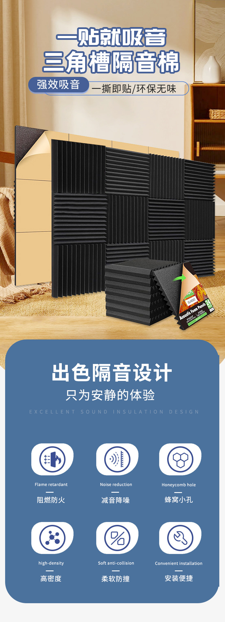 Кросс-бордер звукопоглощающая пенопластовая губка, самоклеящийся хлопок для KTV, звукопоглощающий материал для спальни, огнеупорный звукопоглощающий спонж